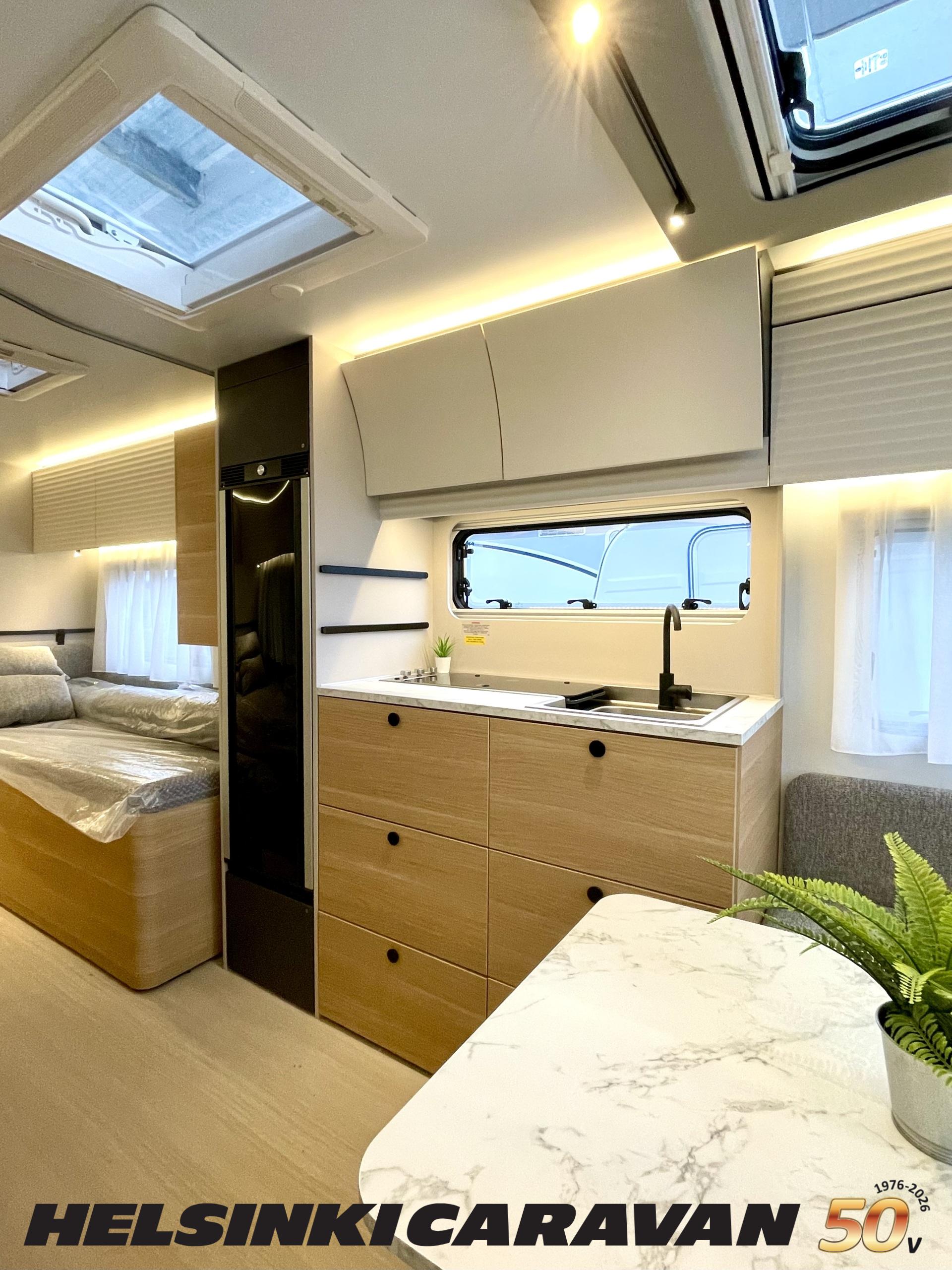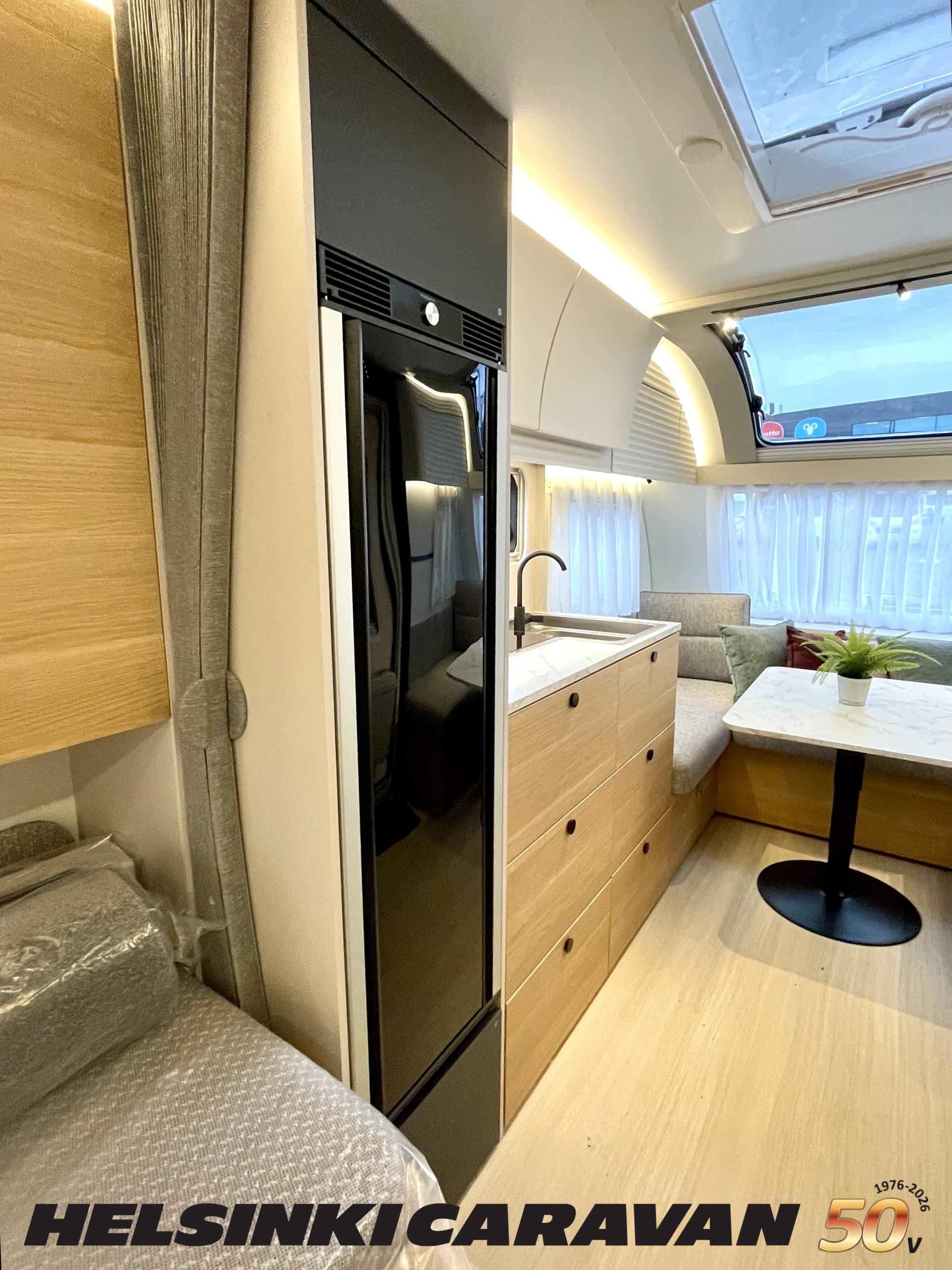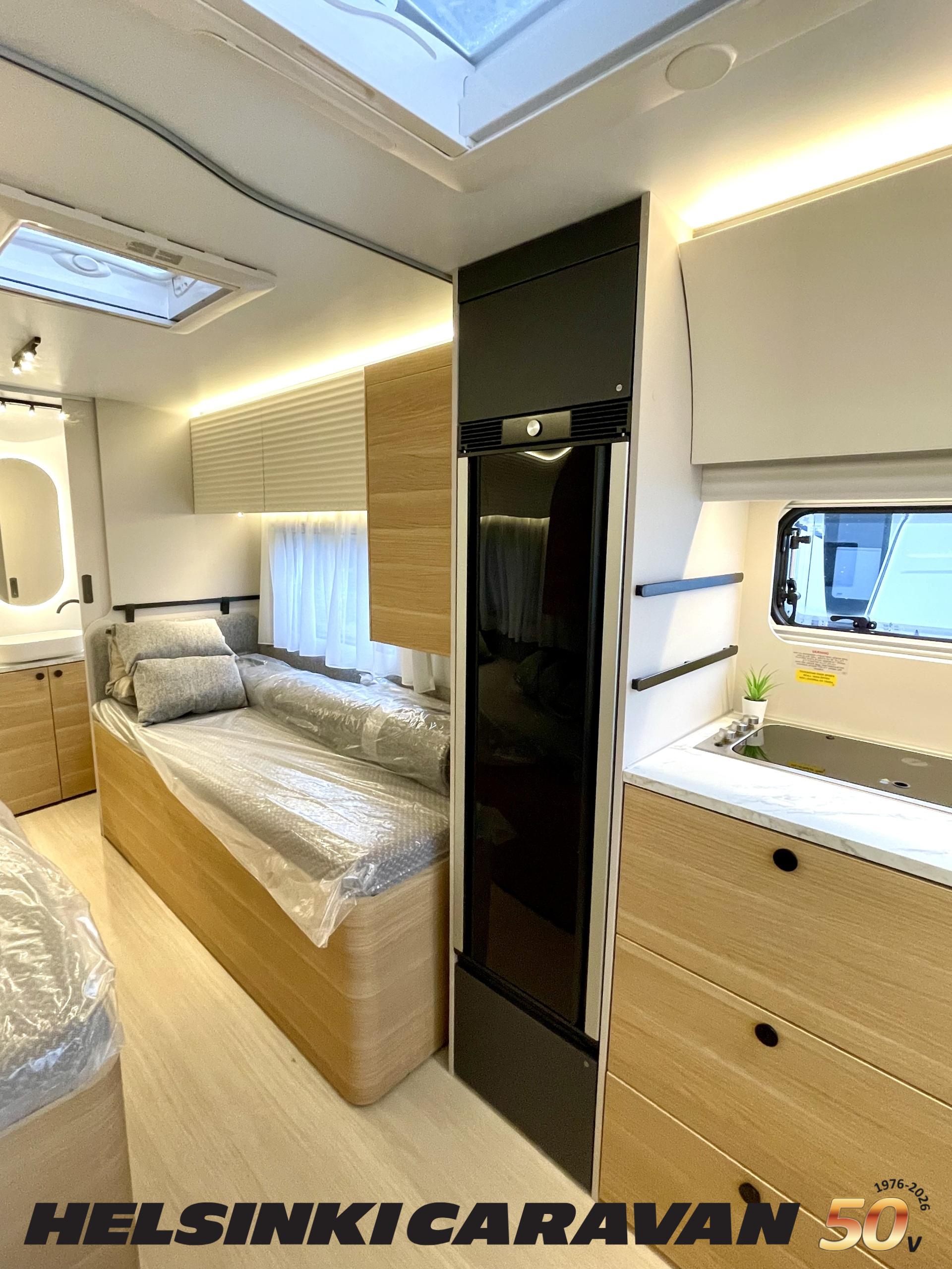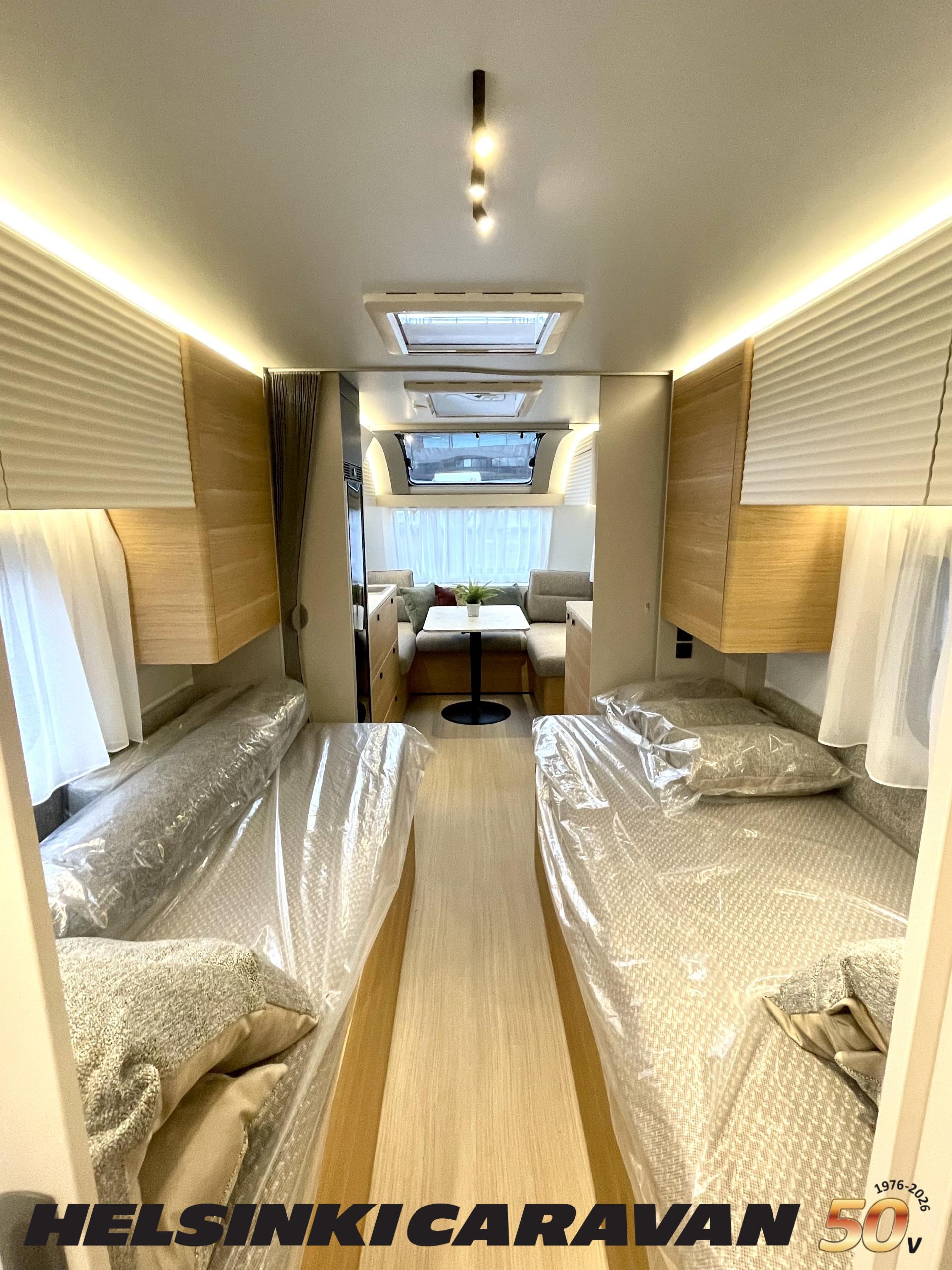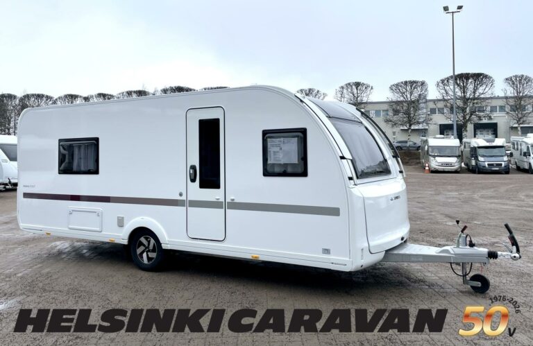 Tämä ruotsalainen premium- luokan asuntovaunu on suunniteltu erityisesti pohjoisiin olosuhteisiin ja tarjoaa erinomaisen asumismukavuuden ympäri vuoden.