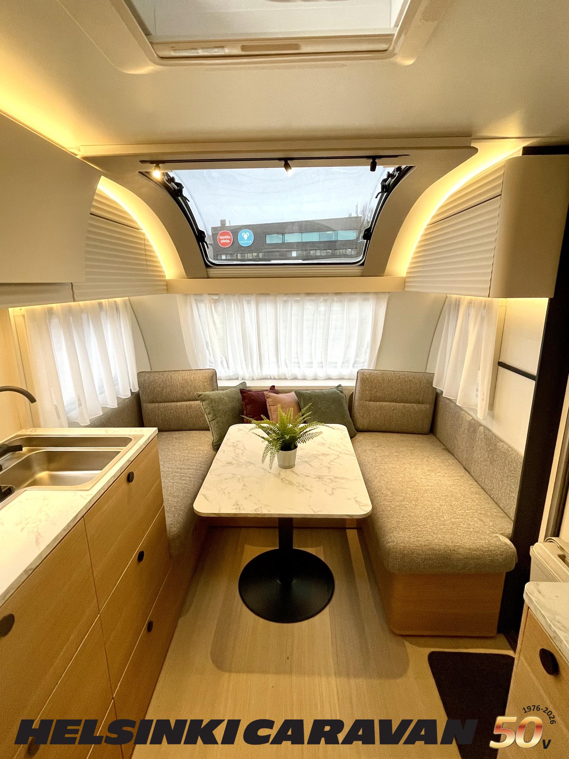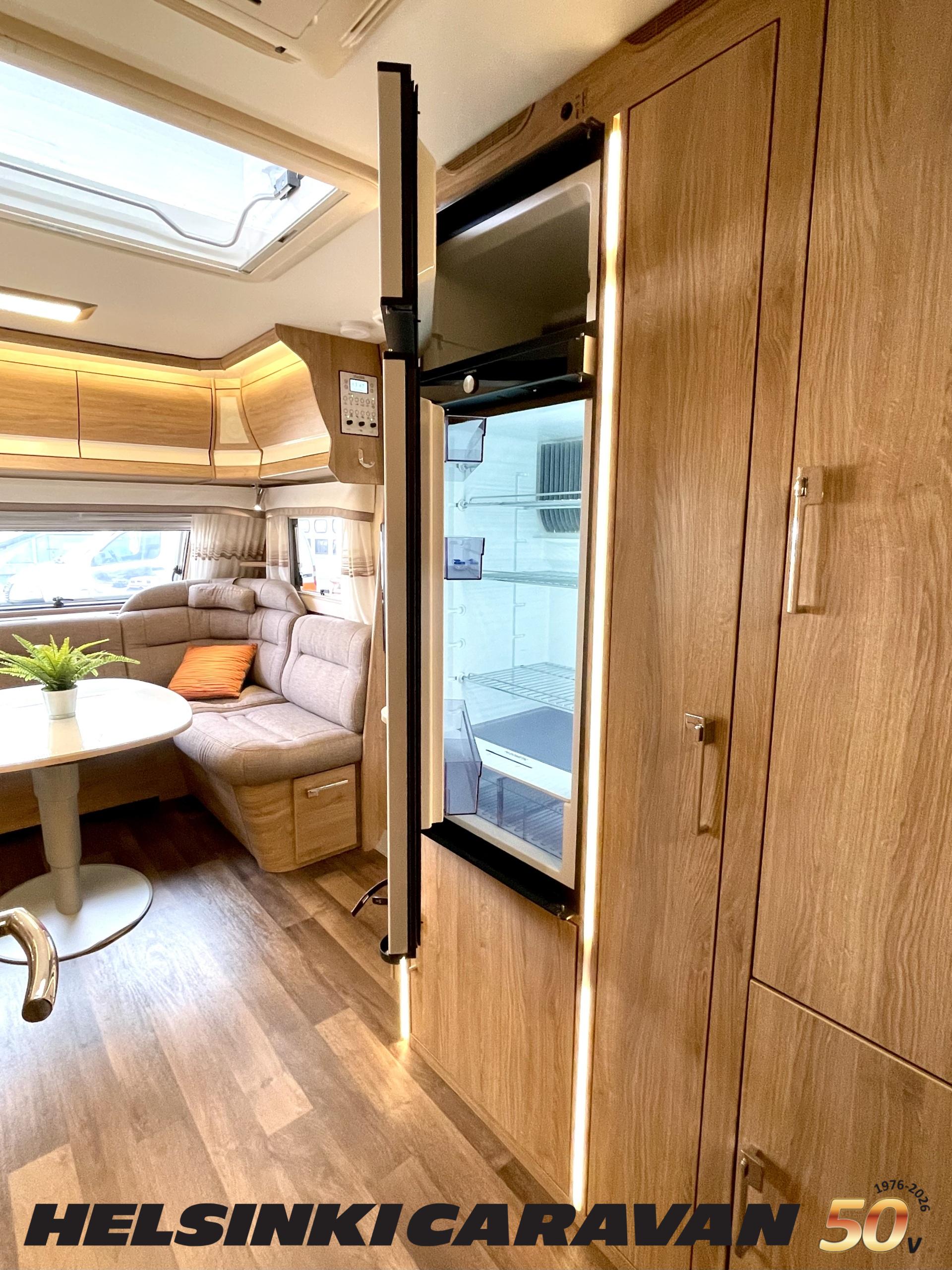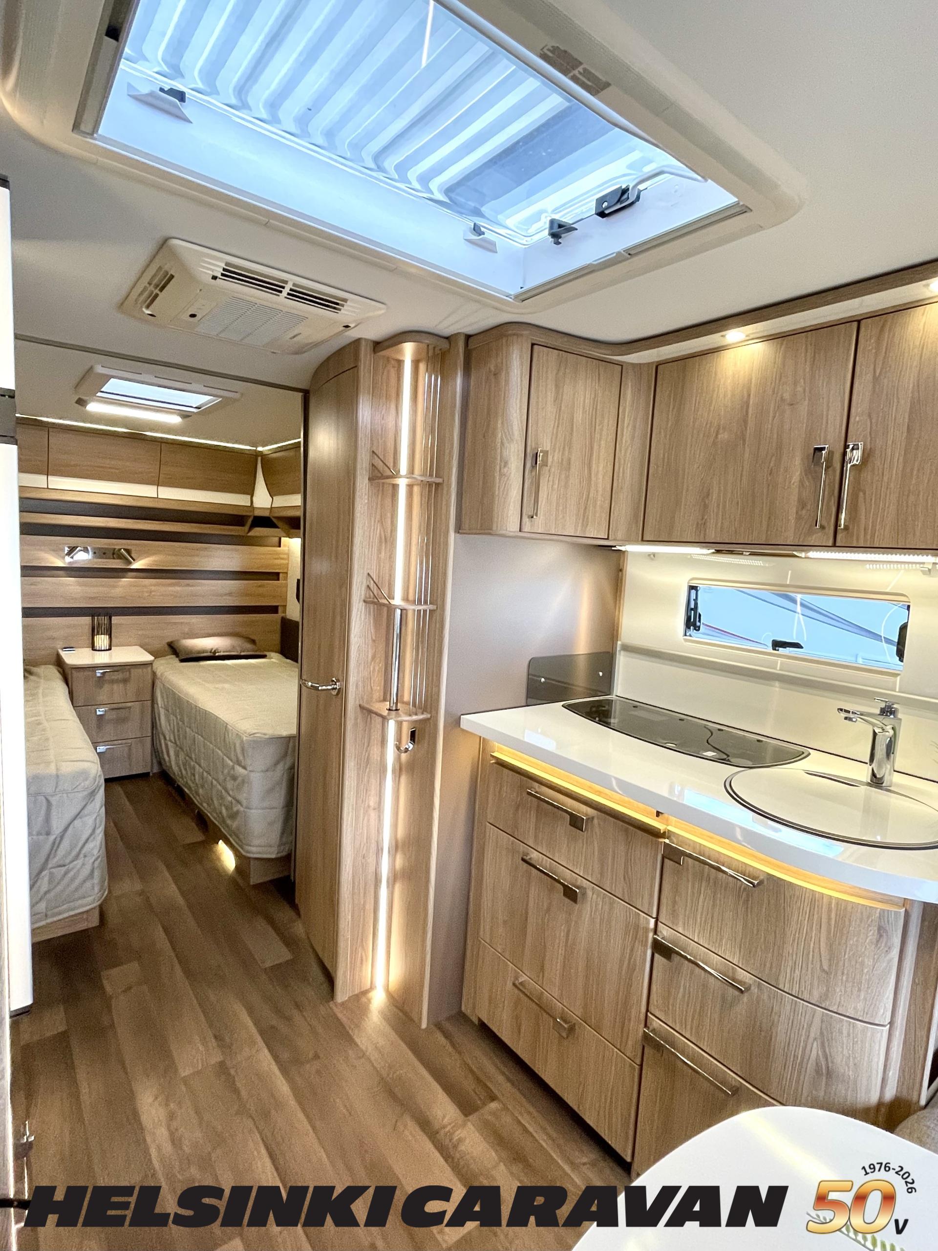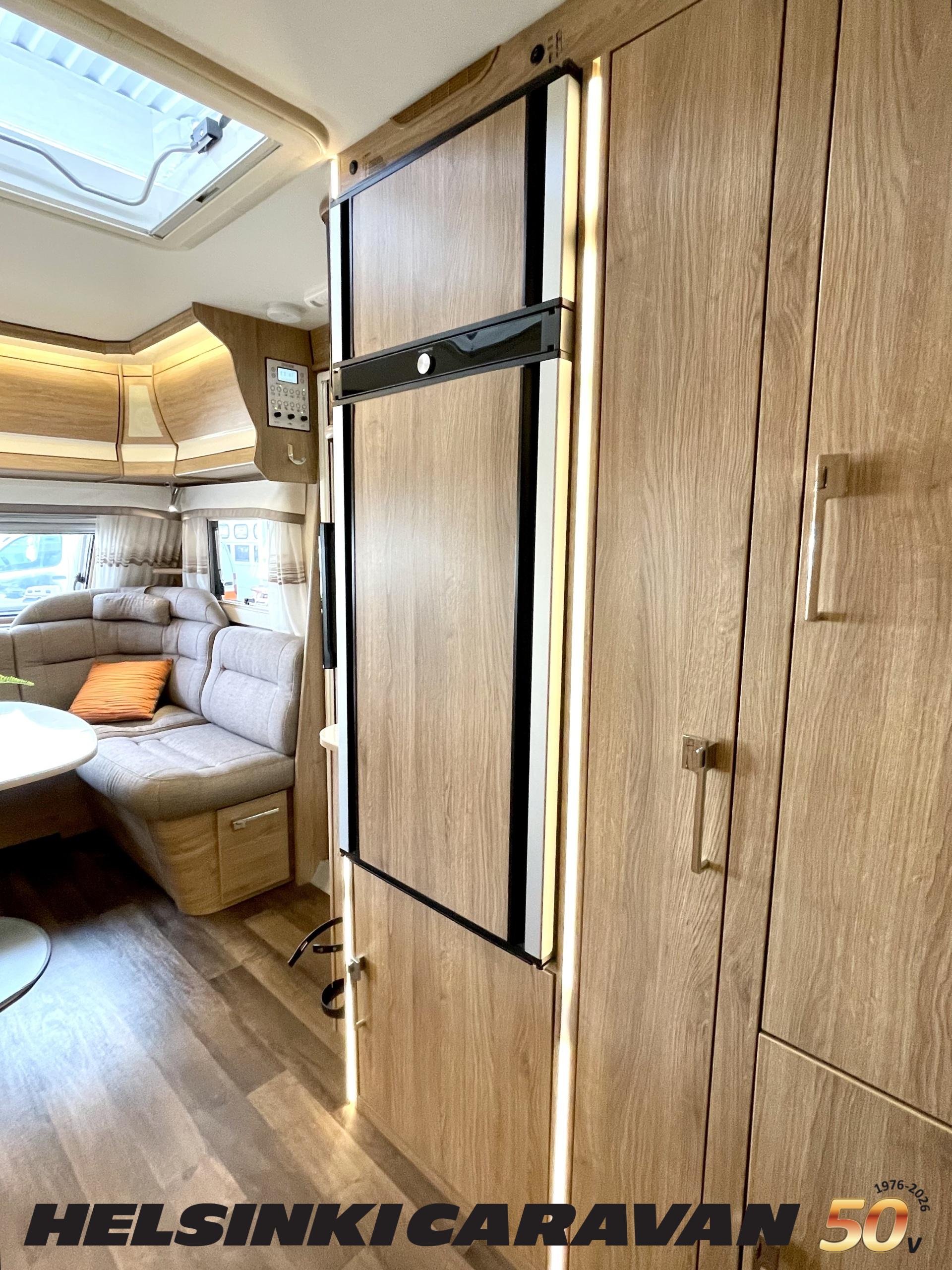 Tämä ruotsalainen premium- luokan asuntovaunu on suunniteltu erityisesti pohjoisiin olosuhteisiin ja tarjoaa erinomaisen asumismukavuuden ympäri vuoden.
