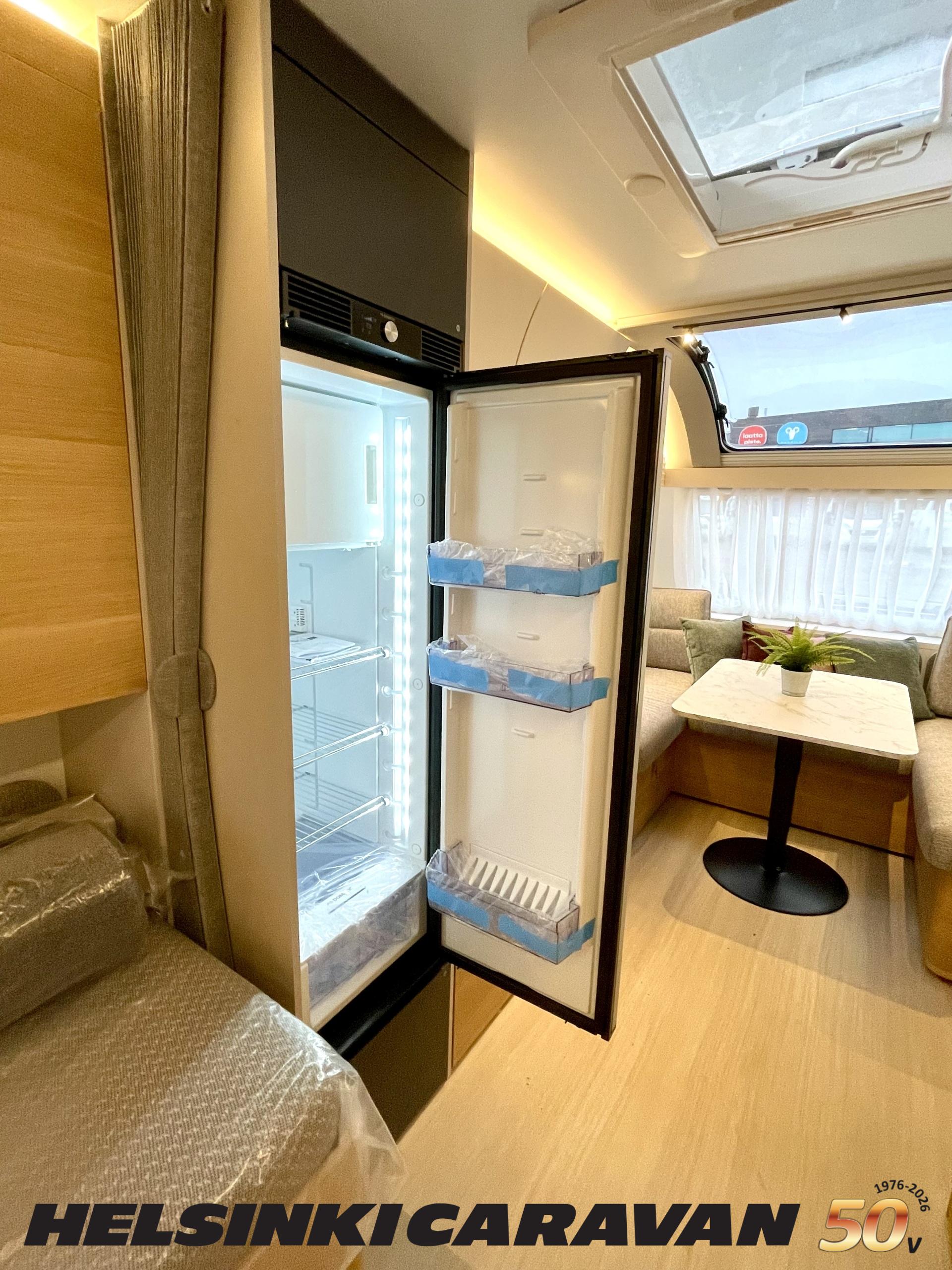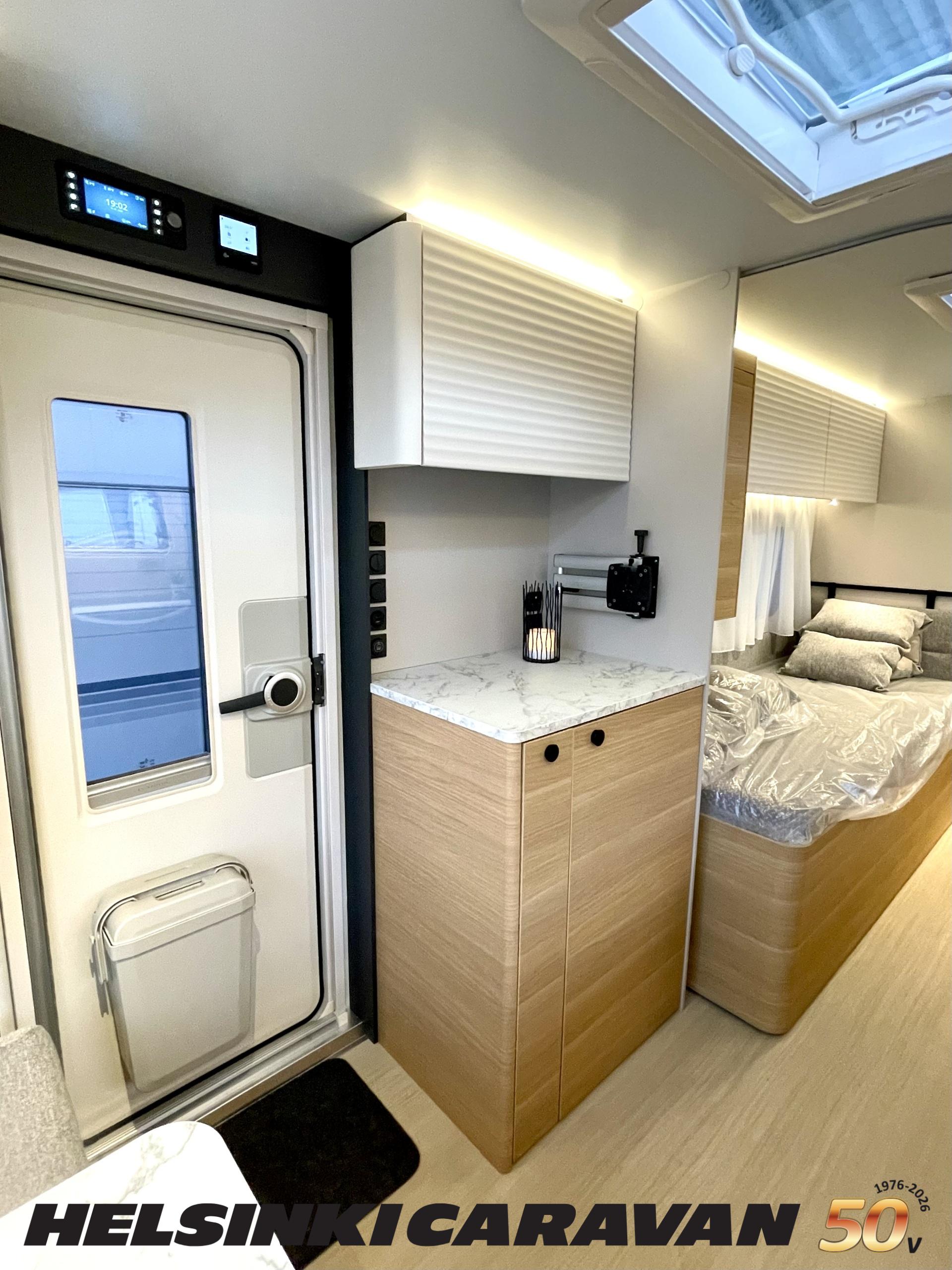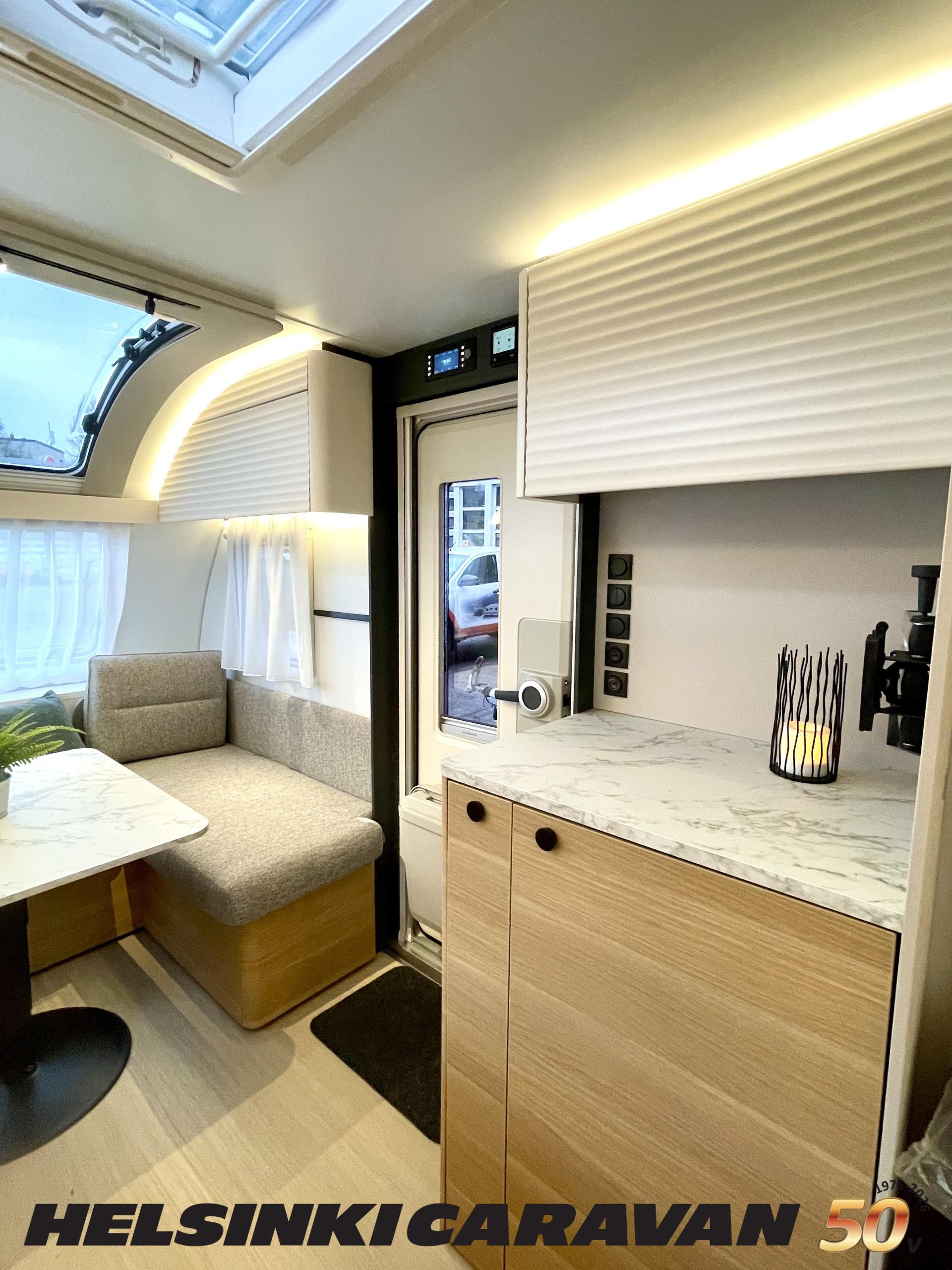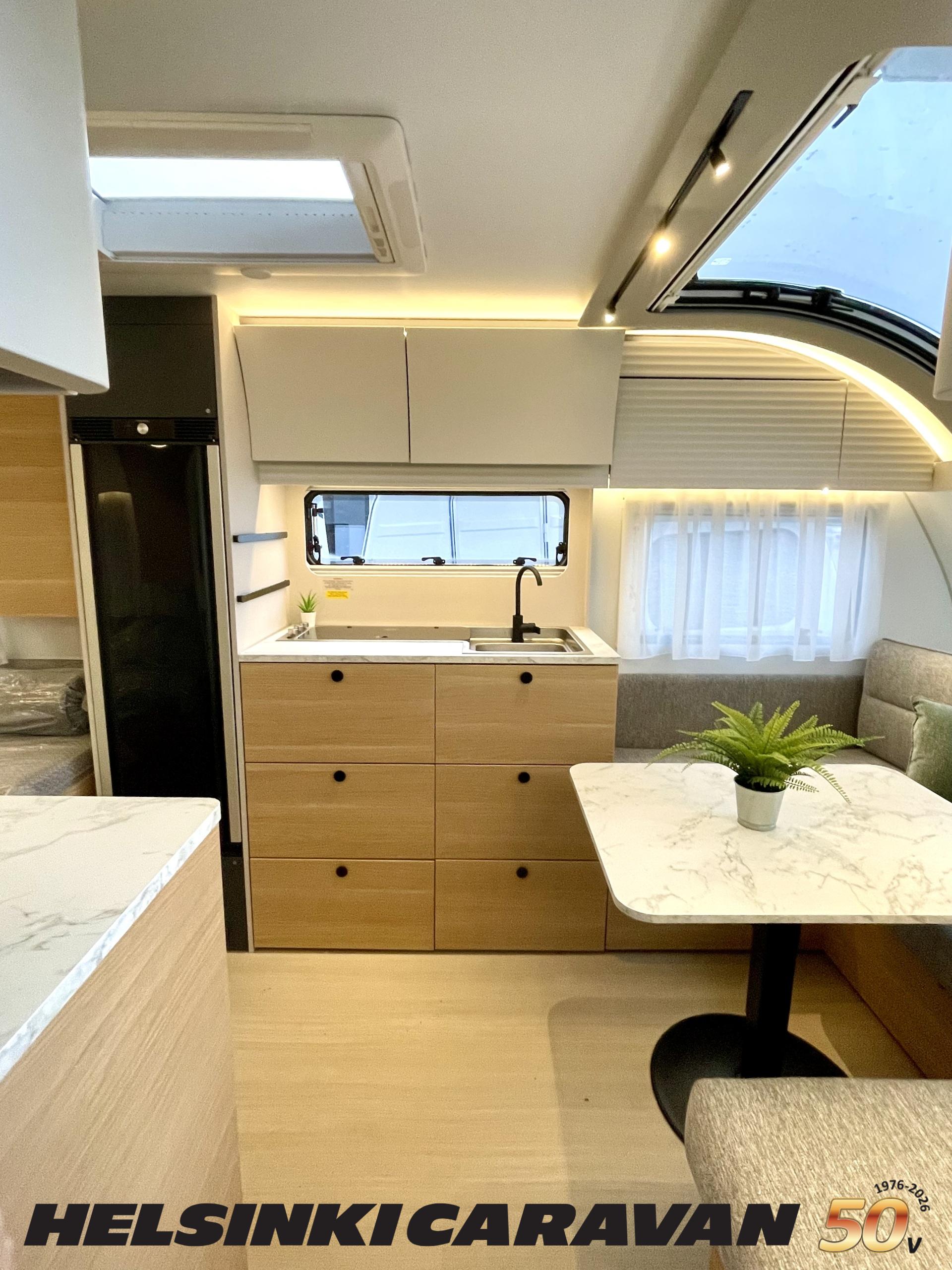 Tämä ruotsalainen premium- luokan asuntovaunu on suunniteltu erityisesti pohjoisiin olosuhteisiin ja tarjoaa erinomaisen asumismukavuuden ympäri vuoden.