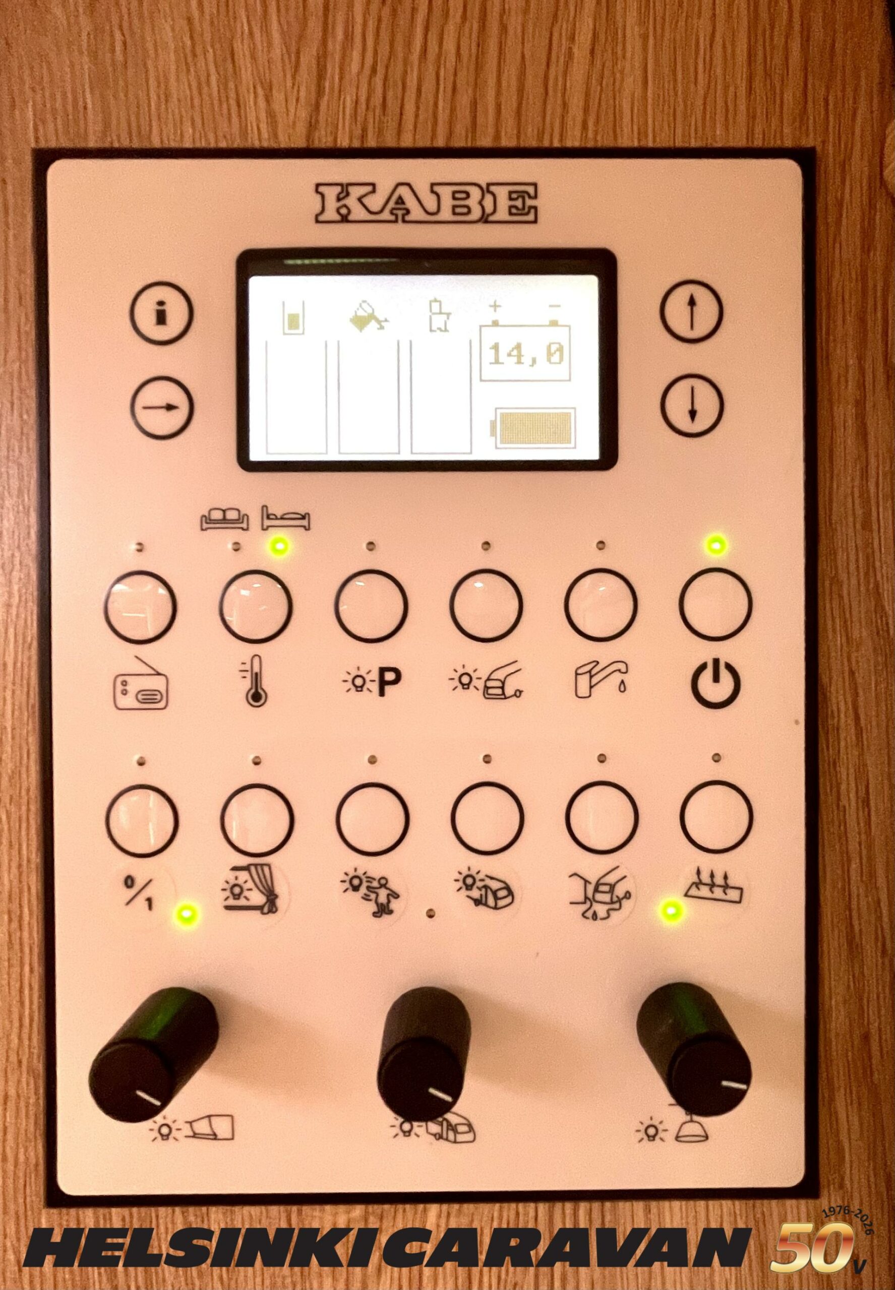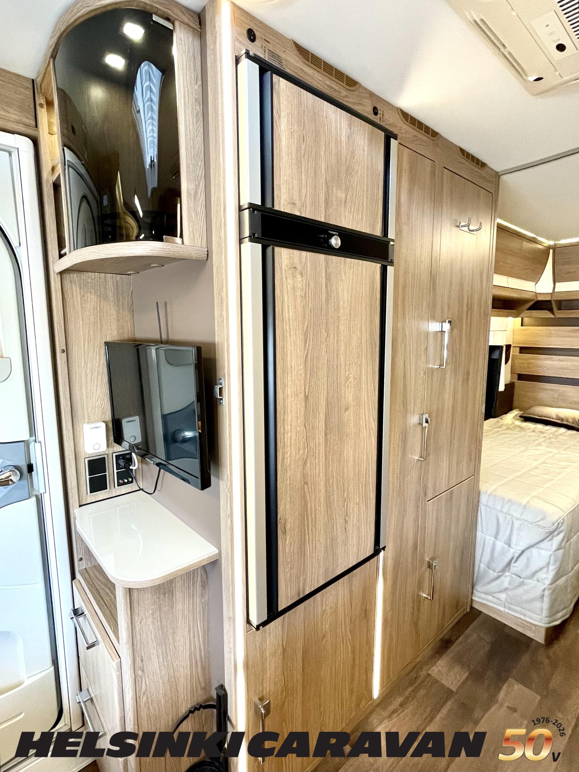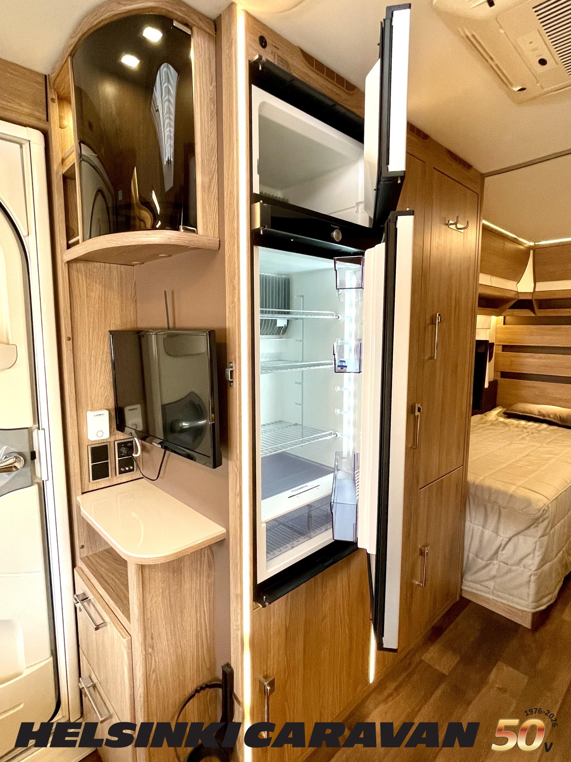 Alde, Erikoisvanteet, Erillisvuoteet, Eristetty harmaavesisäiliö, Jääkaappi, Kasetti WC, Kasettiverhot, Kattoluukku, Lattialämmitys, Lattiamatot asunto-osassa, Liesi, Lämminvesiboileri, Markiisi, Nestekiertolämmitys, Pakastelokero, Pesuallas, Radio, Suihku, Suksiluukku, Sähköpatruuna, TV-antenni tai lautasantenni, Tukijalat, Lattialämmitys (nestekierto), Ilmastointi (asuintila), Kesärenkaat, Polkupyöräteline, 1 x kevytmet.vanteet, kwh-mittari, kaasun ulosotto, liesituuletin, sähkön ulosotto, televisio, televisioteline, Asuinosan hyttysovi/verho