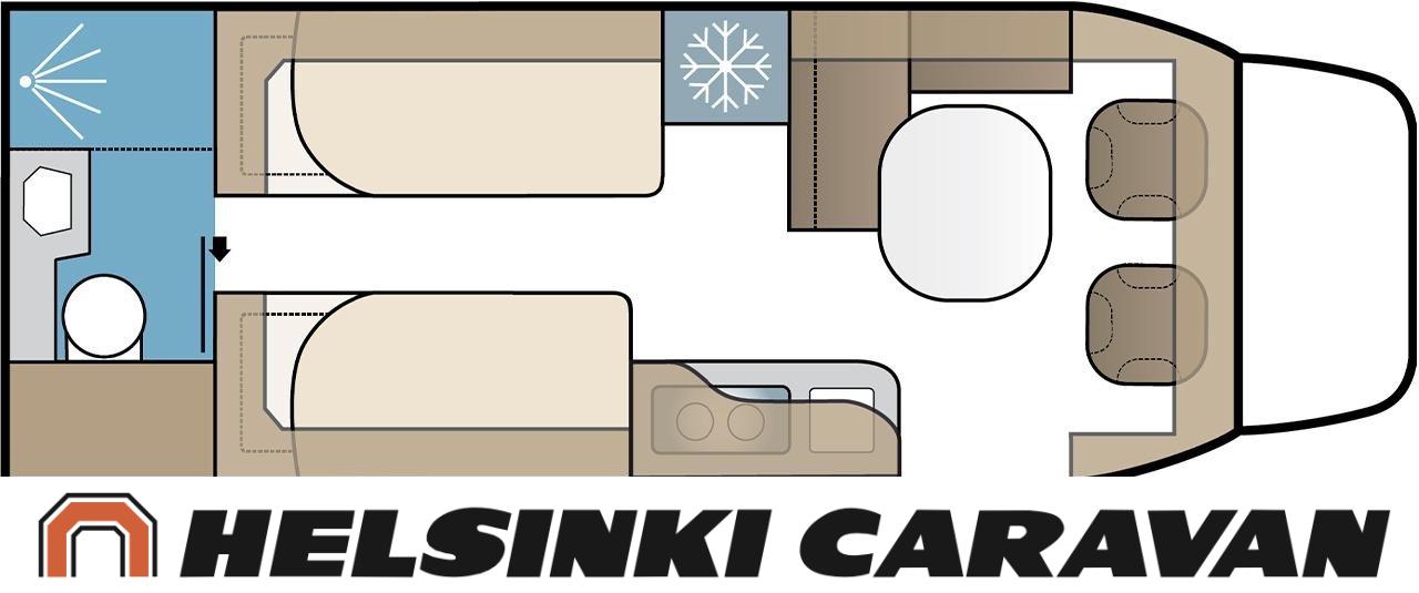 Ajonvakautusjärjestelmä, Ajotietokone, Alde, Alde lämmönvaihdin, Alde ohjaamon nestekiertoinen matto, Erillisvuoteet, Bluetooth, Eristetty harmaavesisäiliö, Ilmastointi ajotilassa, Jääkaappi, Kattoluukku, Keskuslukitus: Kaukosäätöinen, Kasettiverhot, Kasetti WC, Lämminvesiboileri, Lattialämmitys, Pakastelokero, Radio, Suihku, Sähköpatruuna, Sumuvalot, Sähkökäyttöiset ikkunat, Sähköpeilit, Vakionopeudensäädin, TV-antenni tai lautasantenni, Multimedialaite (sis. p-kamera, navi, soitin, bluetooth, handsfree)