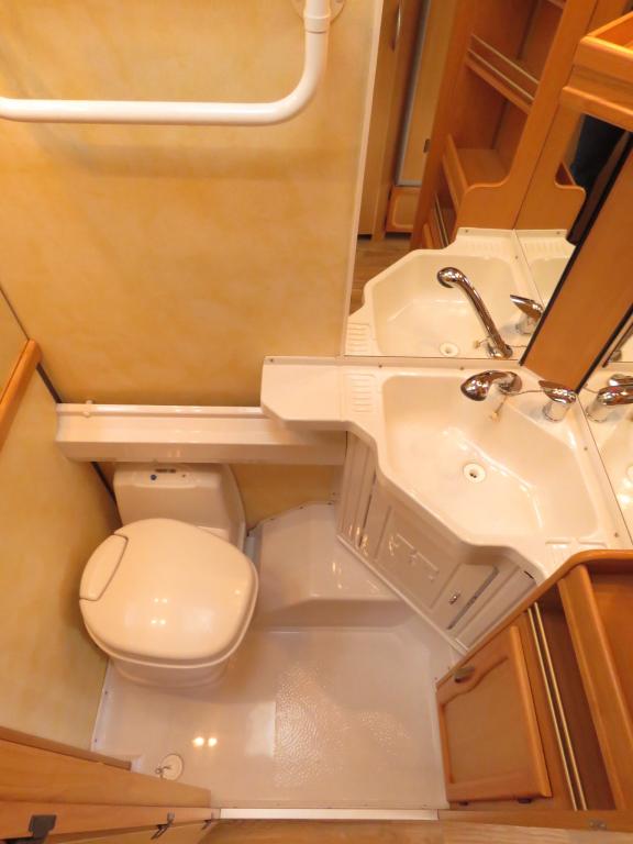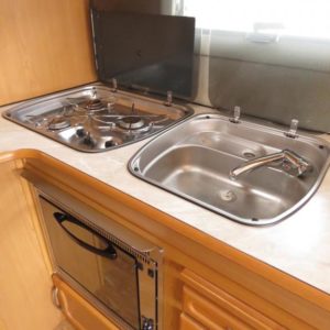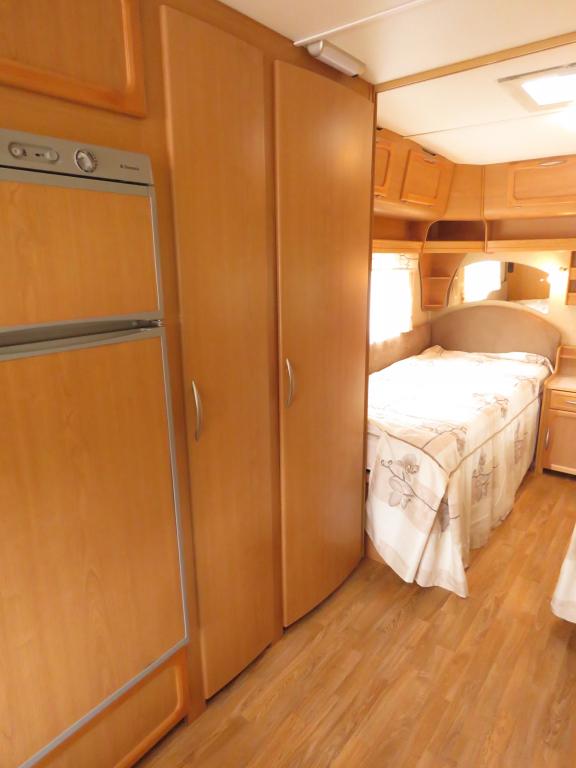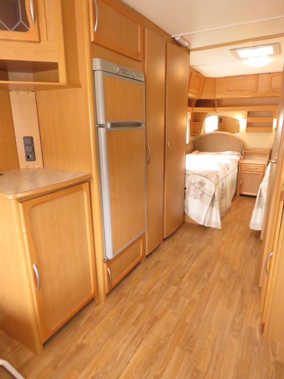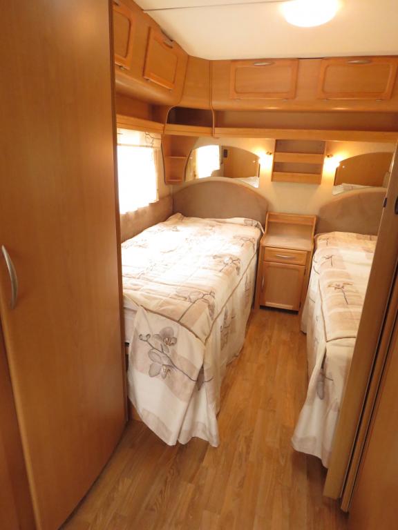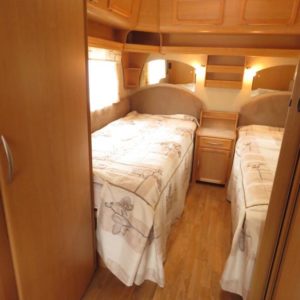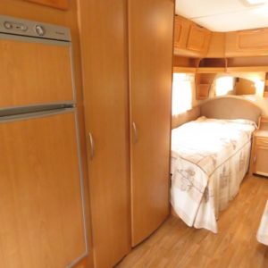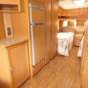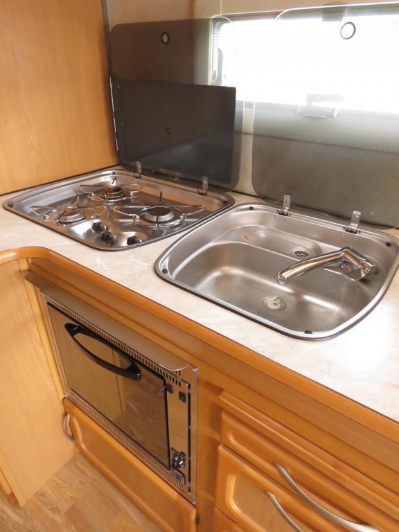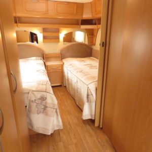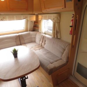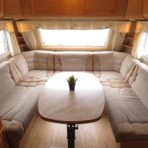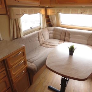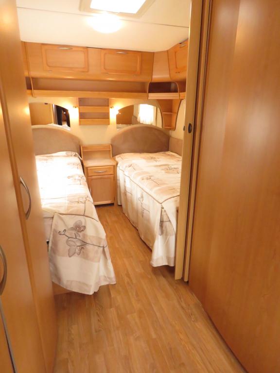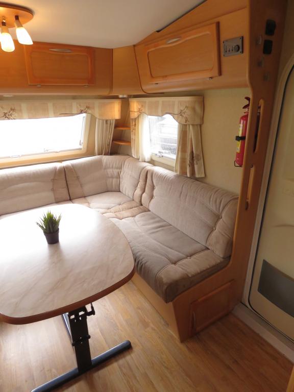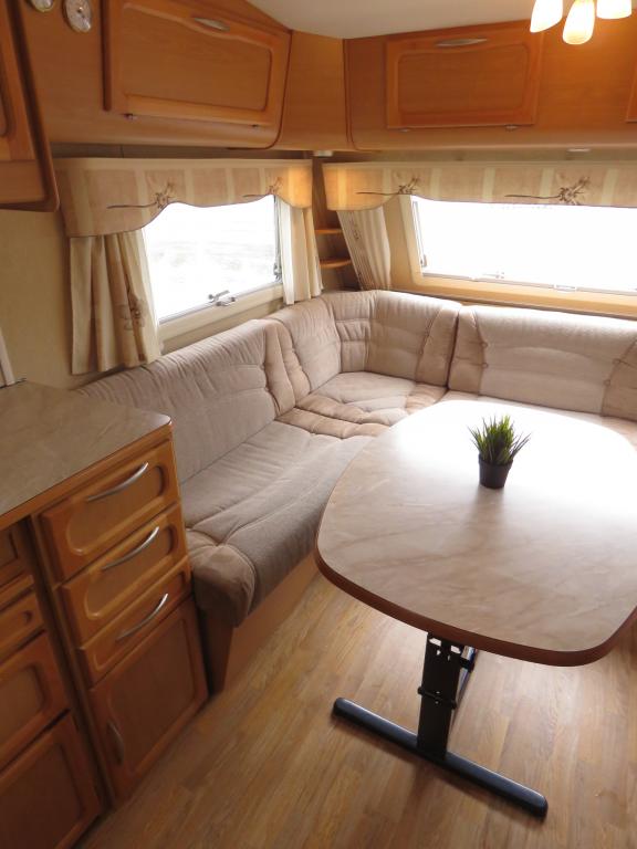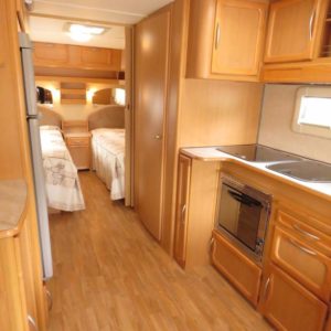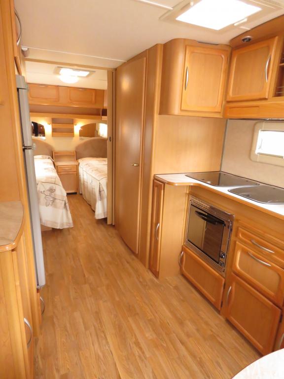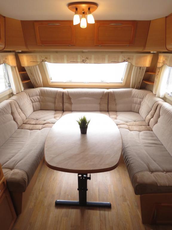 Vaunun takaosassa mukavat erillisvuoteet, edessä iso u- ryhmä. Vaunun keskeltä löytyvän keittiön varustukseen kuuluu iso jääkaappi- pakastin sekä kaasu- uuni. Runsaasti säilytystilaa lukuisten yläkaappien ja täyskorkeiden vaatekaappien ansiosta.