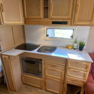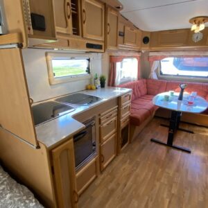 Edessä iso U-ryhmä mistä voidaan sijata parisänky kahdelle henkilölle. Keskellä hyvin varusteltu keittiö, sekä runsaasti koko vaunun korkuista kaappitilaa. Makuuhuone pitkittäisellä parivuoteella sijaitsee keittiön ja aivan vaunun takaosassa sijaitsevan WC/kylpyhuonetilan välissä. Aivan takana on koko vaunun levyinen kylpyhuonetila erillisellä suihkutilalla.