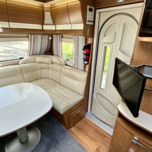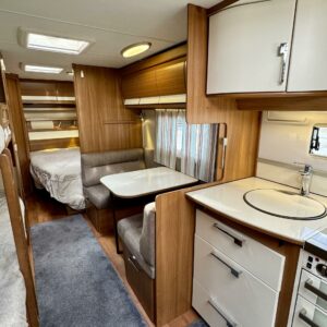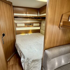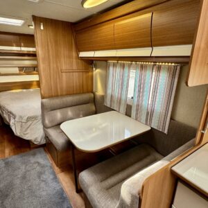 Vaunun keskivaiheilla on kerrossänky ja pieni pöytäryhmä. Pöytäryhmän päälle saa kädenkäänteessä ”taiottua” mukiinmenevän sängyn yhdelle pienemmälle nukkujalle.