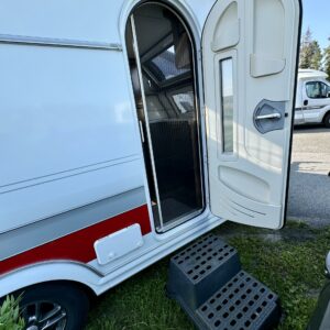 Upea parivuoteinen matkavaunu huippuvarusteilla! Edessä huikean avara keittiö jossa suuri jääkaappi-pakastin- yhdistelmä, kaasu-uuni, liesituuletin ja reilusti tilaa kahvinkeittimelle. Keskellä valoisa U-istuinryhmä pienellä sivusohvalla sekä kivasti kaappitilaa ja multimediasoitin. Takana leveä parivuode jonka alla suuri tavaratila, reilusti vaatekaappeja sekä pesuhuone.