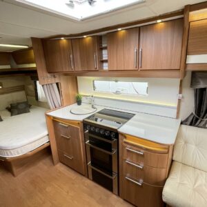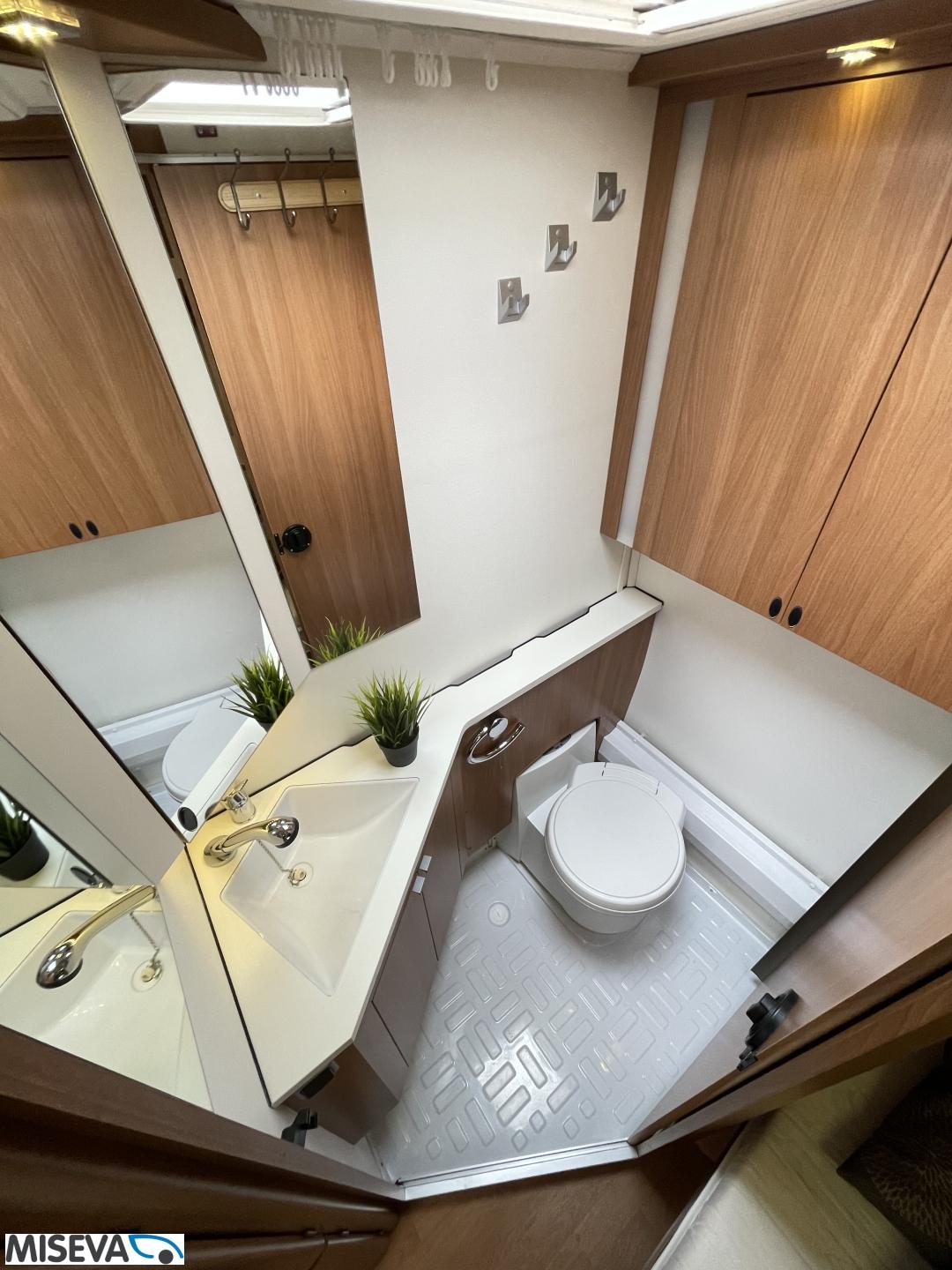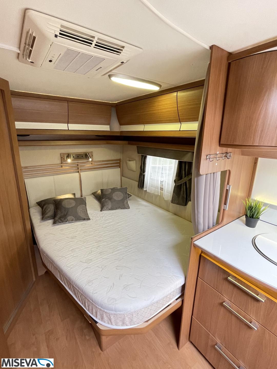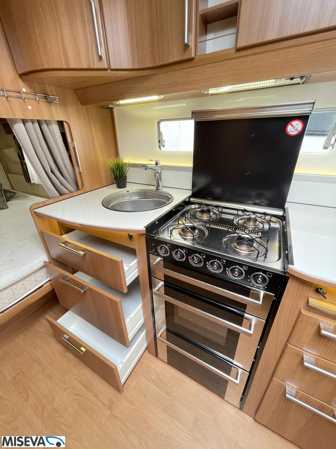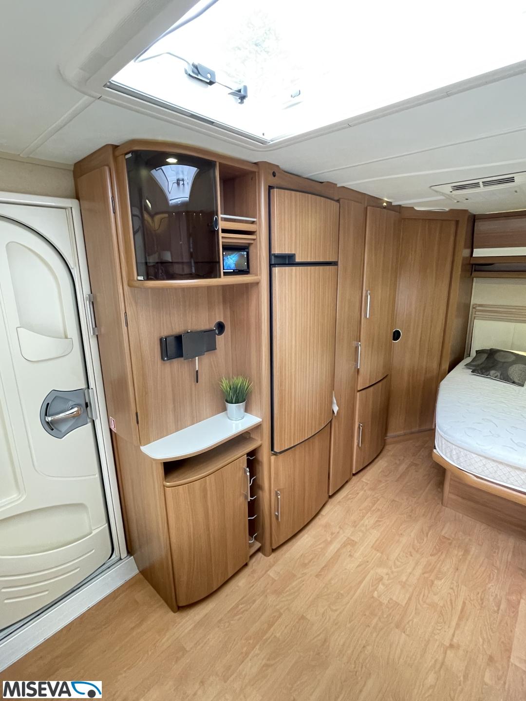 Avarien sisätilojen takeena King Size- malliston 2,5 m kokonaisleveys. Vaunun takaosassa pitkittäinen parivuode ja pesuhuone/ WC, edessä viihtyisä nahkaverhoiltu U- ryhmä. Keittiön varustukseen kuuluu ison jääkaappi- pakastimen lisäksi kaasu- uuni.