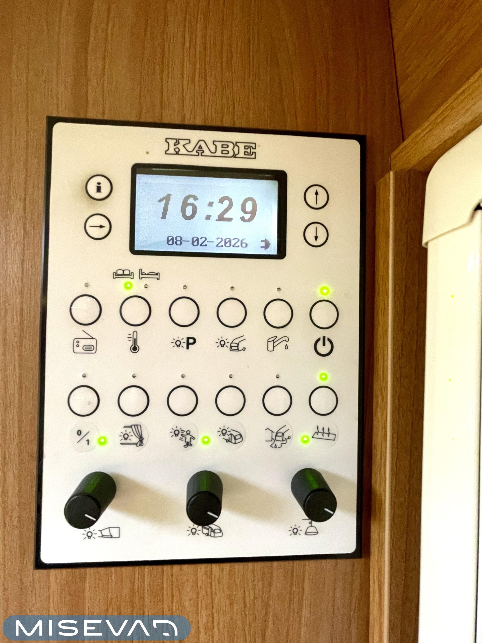 Alde, Etuteltta, CD-soitin, Erikoisvanteet, Eristetty harmaavesisäiliö, Jääkaappi, Kaasu-uuni, Kahdet renkaat, Kasetti WC, Kasettiverhot, Kattoluukku, Lattialämmitys, Liesi, Lämminvesiboileri, Nestekiertolämmitys, Pakastelokero, Parivuode, Pesuallas, Radio, Suihku, Suksiluukku, Sähköpatruuna, TV-antenni tai lautasantenni, Tukijalat, Lattialämmitys (nestekierto), kwh-mittari, 1 x kevytmet.vanteet, ranskalainen vuode, liesituuletin, kaasun ulosotto, sähkön ulosotto, suihkun ulosotto, Asuinosan hyttysovi/verho