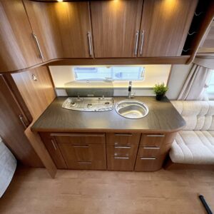Harvinainen kokoluokka Kabella. Takaosan makuuhuoneessa hulppean kokoinen parivuode joustinpatjalla, edessä muhkean mukava u-ryhmä, keskellä avara keittiö missä voit kokkailla maittavat ateriat ja välipalat. Vaunun tunnelma ja värimaailma on aistikkaan skandinaavinen. Kesän helteeltä suojaa ilmastointi ja talven kylmillä lämmittää aito oikea nestekiertoinen lattialämmitys. Tässä vaunu joka sopii joka vuodenaikaan ja nautinnolliseen matkailuun ympäri maailman!