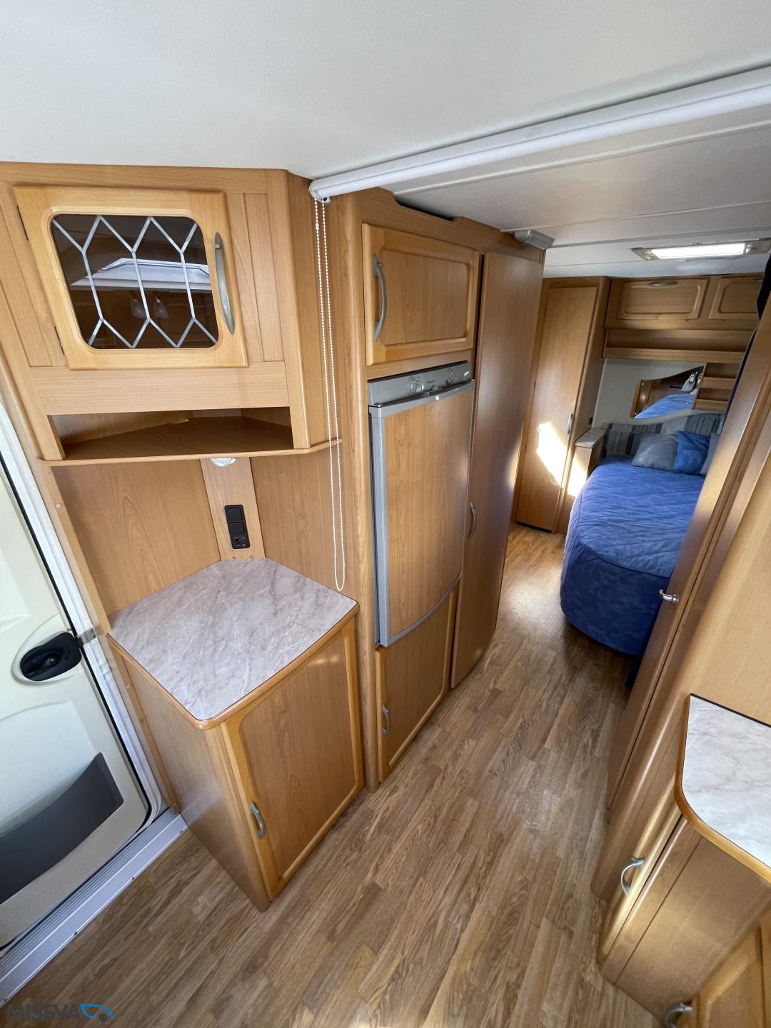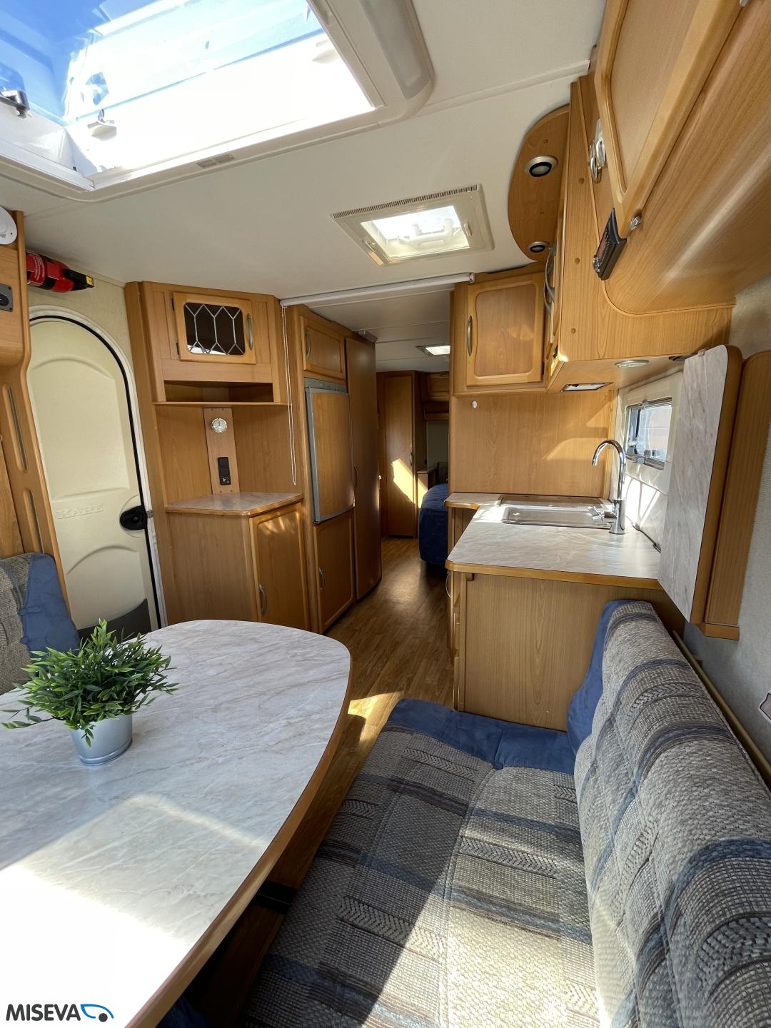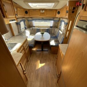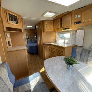 Tilava Safir sarjan Kabe täysleveänä King Sizs- mallina. Alden ansiosta vaunussa viihtyy niin kesä- kuin talvikelissäkin.