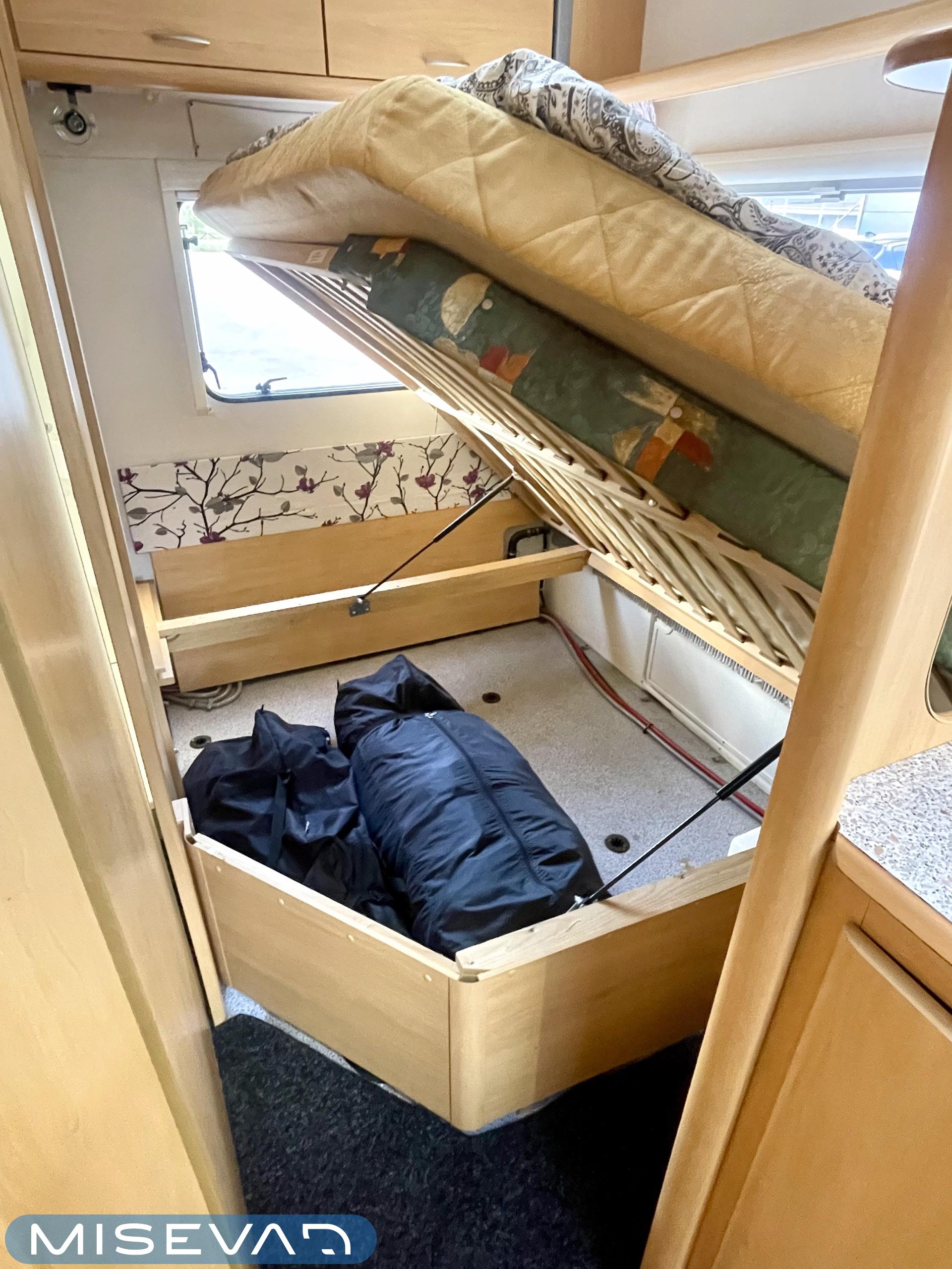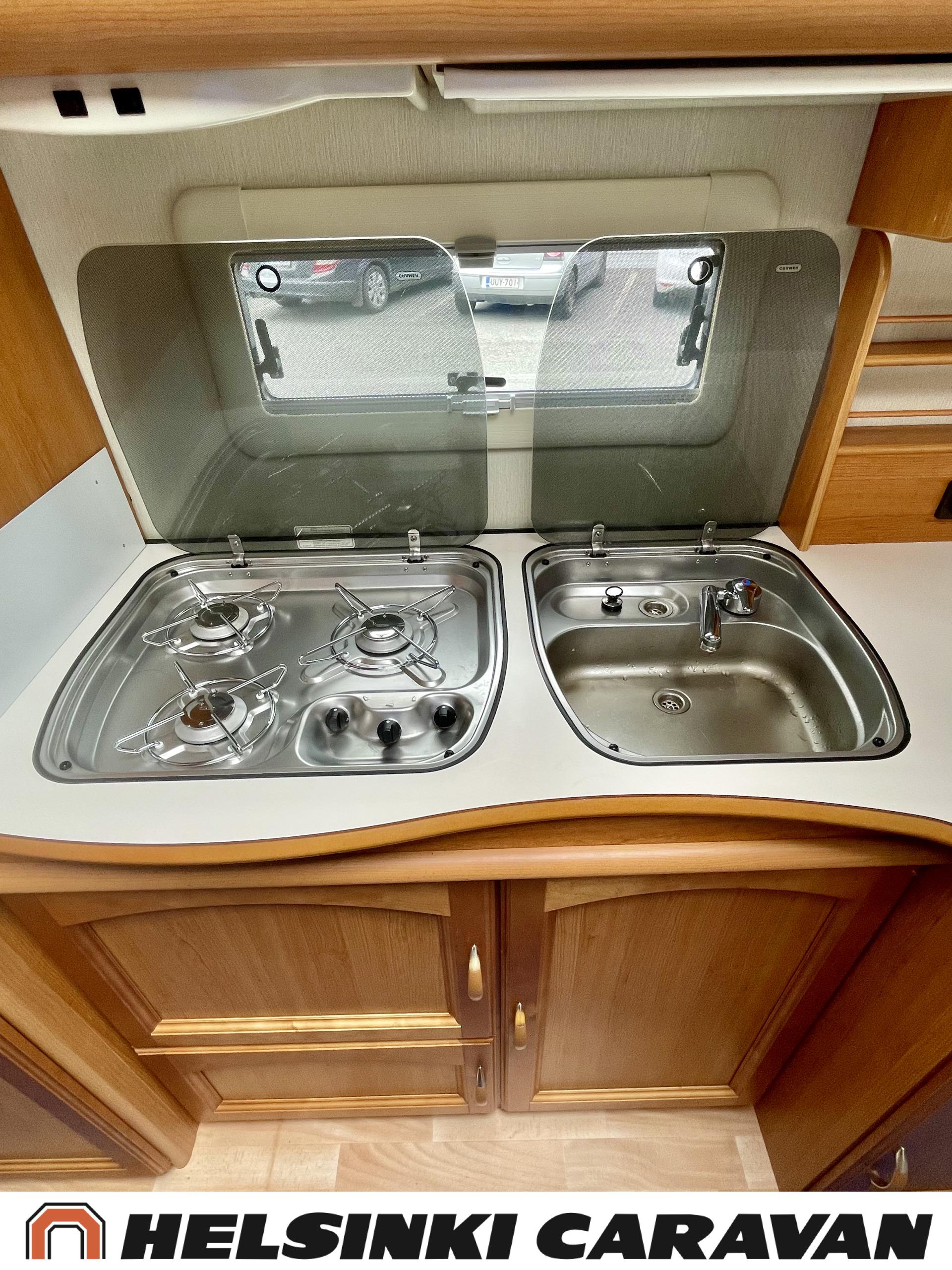 Alde, Erikoisvanteet, Jääkaappi, Kasetti WC, Kasettiverhot, Keskuslämmitys, Lattiamatot asunto-osassa, Liesi, Lämminvesiboileri, Nestekiertolämmitys, Parivuode, Suihku, Sähköpatruuna, Tukijalat, TV-antenni/lautasantenni, Lattialämmitys (nestekierto), Eristetty harmaavesisäiliö, liesituuletin, kaasun ulosotto