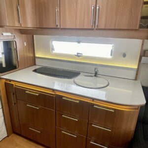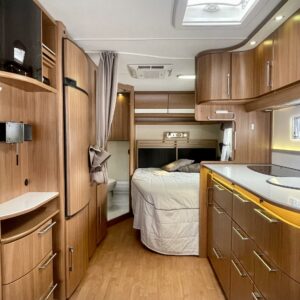 Tyylikäs ja siisti Kabe takana olevalla parisängyllä ja runsaalla kaappitilalla. Alden nestekiertolämmitys pitää vaunun lämpöisenä kylmemmilläkin keleillä. Ilmastointi puolestaan hoitaa viilennyksen vaivatta kuumina kesäpäivinä. Vaunussa myös avara keittiö runsaalla laskutilalla joka kutsuu kokkaamaan. Jääkaappiin mahtuu isommankin perheen eväät. Yöpymistilaa on neljälle hengelle. Ja vaunun etuosan ruokaryhmään sopii samalla porukalla istumaan. Vaunua on helppo siirrellä sen omalla moverilla.