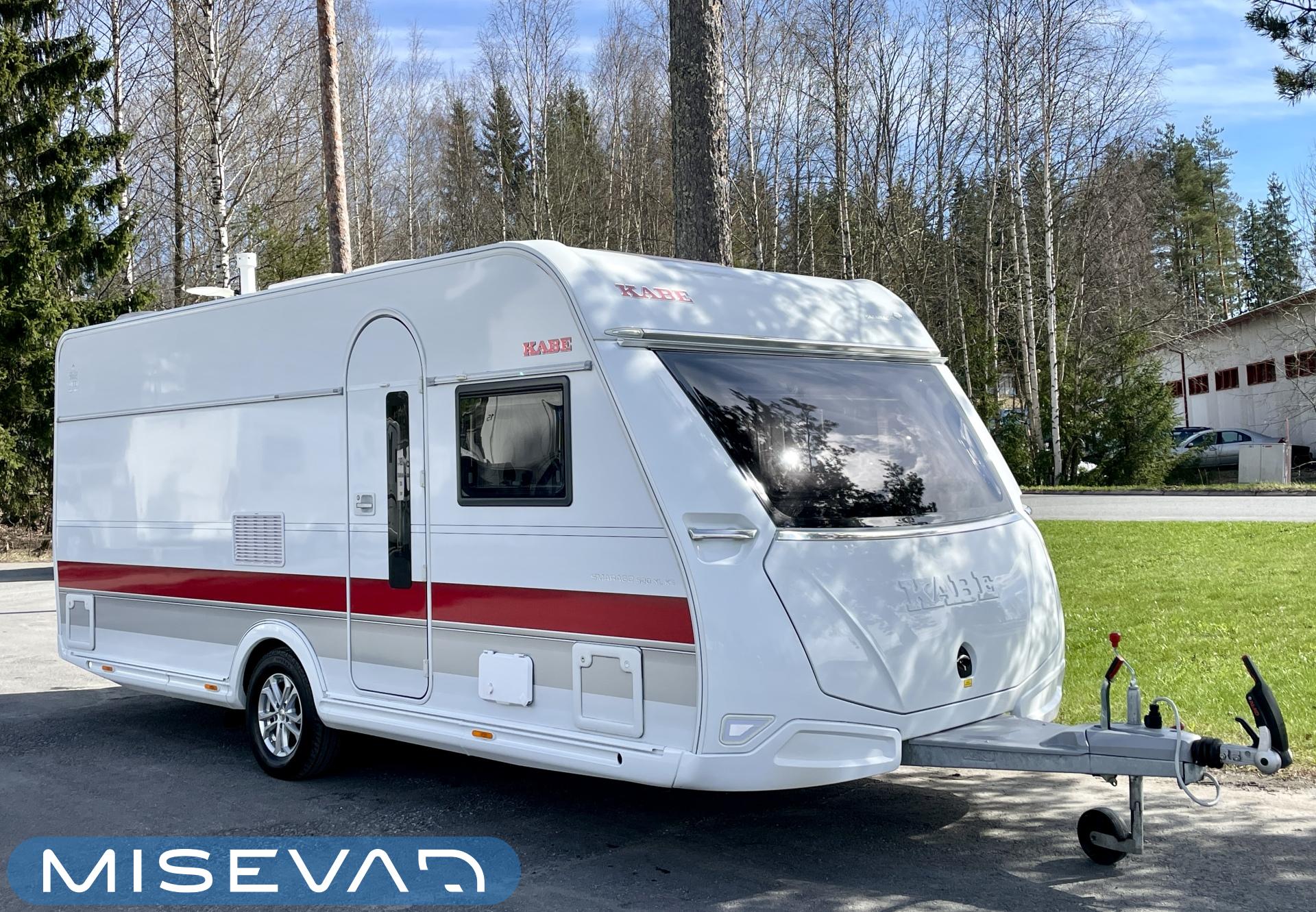 Hienokuntoinen matkavaunu huippuvarusteilla! Siinä se on tiivistettynä pariin sanaan tämän tapauksen ylisanat. Vaunun takaosaan on sijoitettu pitkittäinen parivuode, mistä saadaan päädyn korkeutta/kulmaa säädettyä sähköisesti mukavaan asentoon vaikkapa kirjaa lueskellessa. Vierestä löytyy tilava WC suihkulla ja onha siellä vielä kuivaustelinekin. Keskelle on asemoitu keittiö. Laskutilaa löytyy runsaasti ja jääkaappi on varustettuna erillisellä pakastinlokerolla. Lisäherkkuna keittövarustelussa on myös Dometicin mikro. Etuosaa hallitsee U-ryhmä mistä saadaan tarvittaessa lisävuode kahdelle henkilölle. Kabemaiseen tyyliin lämmityksenä on Alden nestekeskuslämmitys ja tietysti myös lattiakierrolla varustettuna. Kesäkuumalla sisätilat viilennetään sopivaan lämpötilaan Dometicin ilmastoinnin avulla. Jos ei olla valtionverkon sähköissä kiinni, niin akkua lataa katolle sijoitettu aurinkopaneeli. On siisiti, niin sisältä kun päältäkin! Ja tässä vaunussa on suoritettu vuosittaiset kosteusmittaukset, joten tehtaan tiiveystakuu on voimassa. Tule ihastumaan, ehkä tässä on sinun uusi matkailuvaunusi?