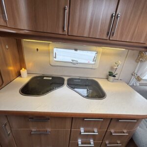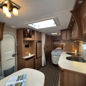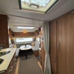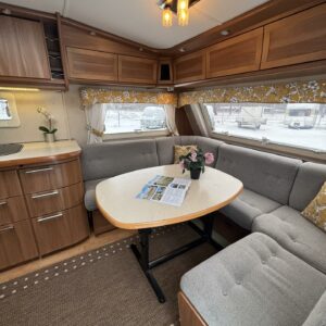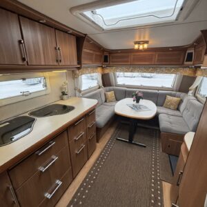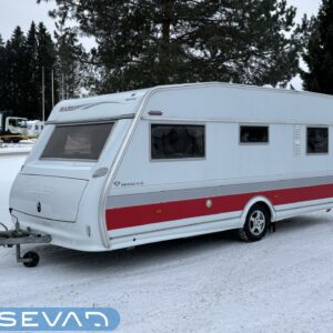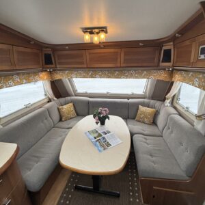 Nätti Kabe! Sisätiloiltaan erityisen siisti yksilö. Takana pitkittäinen parivuode , kylppäritilat, sekä säilytystiloja.Keskellä on keittiö ja keittiötasolla on laskutilaa mukavasti. Huomattavaa on myös, että jääkaappi on sijoiteltu ihanteelliselle käyttökorkeudelle. Etuosasta löytyy U-ryhmä mistä tulee tarvittaessa parivuode. Aivan mahtava varuste on ihan sisäänkäynnin välittömässä läheisyydessä oleva vaatekaappi ulkovaatteille. Etuosan kattoluukku on mallia suurempi ja mahdollistaa luonnonvalon suorastaan tulvia sisätiloihin. Ja koska kyseessä on Kabe niin luonnollisesti Alden nestekiertolämmitys tästä vaunusta löytyy ja tietysti myös lattiakiertoisena. Löytyypä lisävarustelistalta vielä kwh-mittari ja automaattinen kaasupullon vaihtaja. Katsastetaan 1/26.