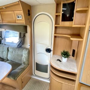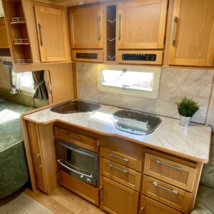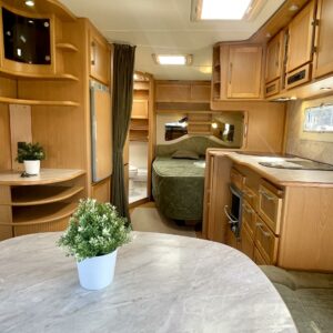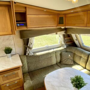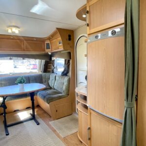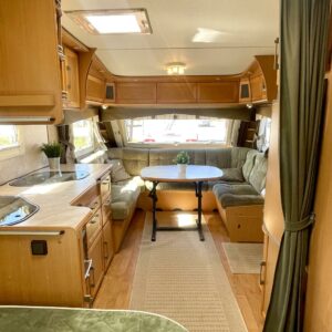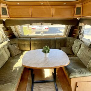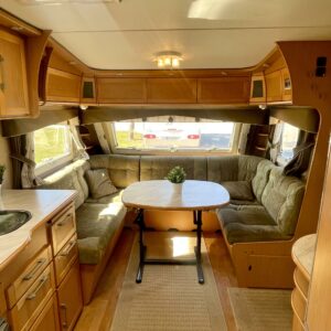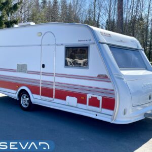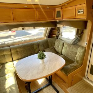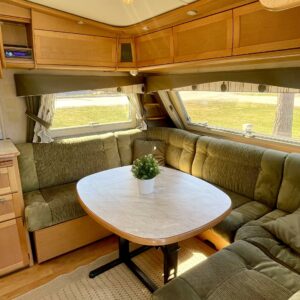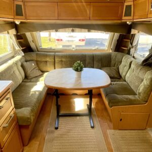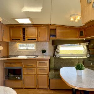Siisti ja hyvin pidetty vaunu ensimmäiseltä omistajalta. Vaunun etuosassa on reilun kokoinen ruokaryhmä, jonka saa muunnettua sängyksi halutessaan. Vierestä löytyy mukavan kokoinen keittiö, runsaalla laskutilalla ja kätevillä vetolaatikostoilla. Uunikin löytyy varusteista, jos tekee mieli alkaa pullaa leipomaan. Takaosassa on ruhtinaallisen kokoinen parisänky. Ja takaa löytyy myös huone suihkutteluun ja helpotukseen. Kaappitilaa on Kabessa kivasti ja yleisilme siisti. Kabe on merkkinä tunnettu laadustaan ja sen kyllä huomaa. Tästä kiva vaunu ympärivuotiseen asumiseen tai laskettulumäkien kylkeen, talviharrastuksia ajatellen.