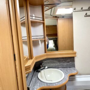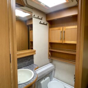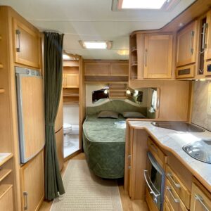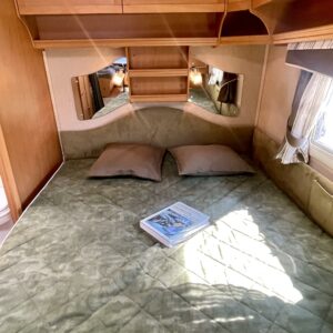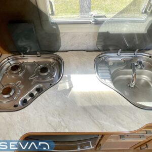 Alde, Jääkaappi, Kaasu-uuni, Kahdet renkaat, Kasetti WC, Kasettiverhot, Kattoluukku, Lattialämmitys, Lattialämmitys (nestekierto), Liesi, Lämminvesiboileri, Nestekiertolämmitys, Pakastelokero, Parivuode, Pesuallas, Radio, Suihku, Sähköpatruuna, Tukijalat
