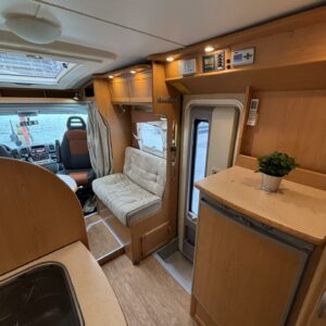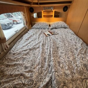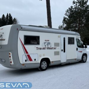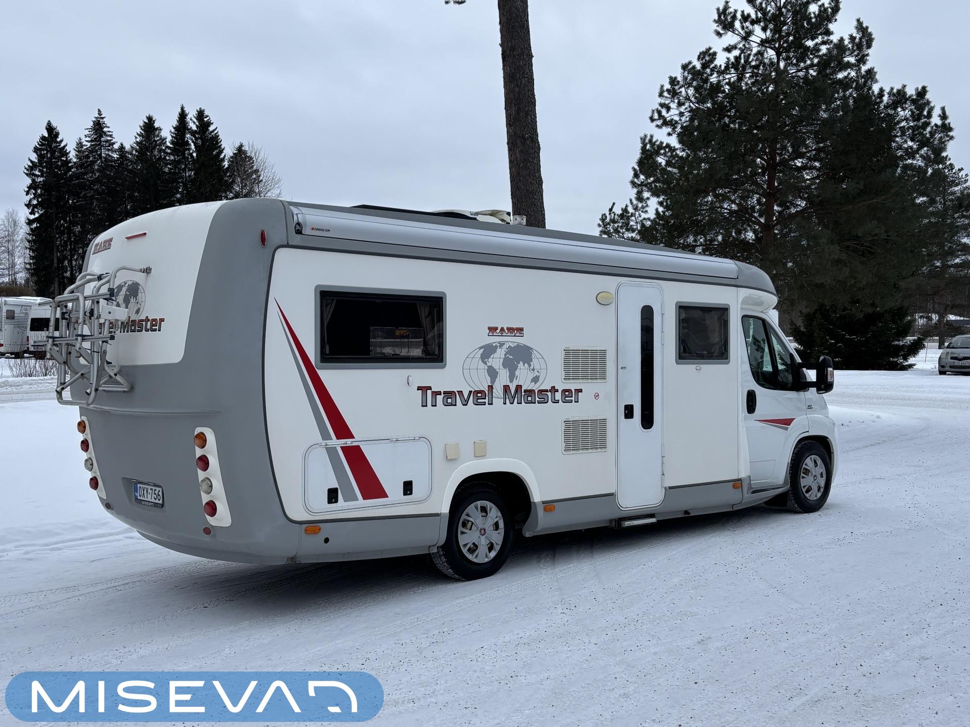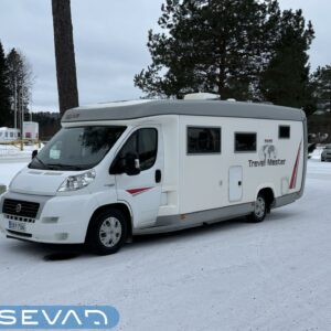 Talven seikkailuihin one and only eli KABE (palvelee toki myös kesäkeleillä)! Vahvemmalle Fiat Ducaton Maxi alustalle tehty matka-auto, missä myös isompi 3 litrainen moottori, sekä takaosassa Al-ko alusta. Tällä pärjäilee tiukemmassakin pakkasessa, koska torpan lämpöisenä pitää tehokas Alde nestekeskuslämmitin lämmitysjärjestelmään yhdistetyillä lisäherkuilla varustettuna. Auton edestä löytyy ruokailu/seurusteluryhmä ja tilaa voisi kutsua vaikkapa olohuoneeksi. Tähän saa myös tehtyä tilapäisvuoteen yhdelle henkilölle. Keskelle on sijoitettu L-keittö missä normaali varustelun lisäksi kaasu-uuni + grilli. Takana on pitkittäinen parivuode ja sen vieressä kylppäritilat erillisellä suihkutilalla. Jos talvella pakkanen torjutaan Aldella, niin vastaavasti kesällä liian kuumaksi käyvät sisätilat viilennetään kattoilmastoinnin avulla. Ohjaamossa varusteina on mm. vakionopeuden säädin, sekä ohjaamoilmastointi. Muita mukavia jo valmiiksi asennettuja varusteita ovat automaattinen kaasupullon vaihtaja, markiisi, sekä pyöräteline. Ja koko komeutta voi kipparoida ihan tavallisella B-luokan (henkilöauto) ajokortilla (kokonaismassa 3500kg)