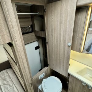 Peräpäästä löytyy muhkeiden erillisvuoteiden lisäksi todella toimivat WC/ pesutilat erillisellä suihkunurkkauksella.