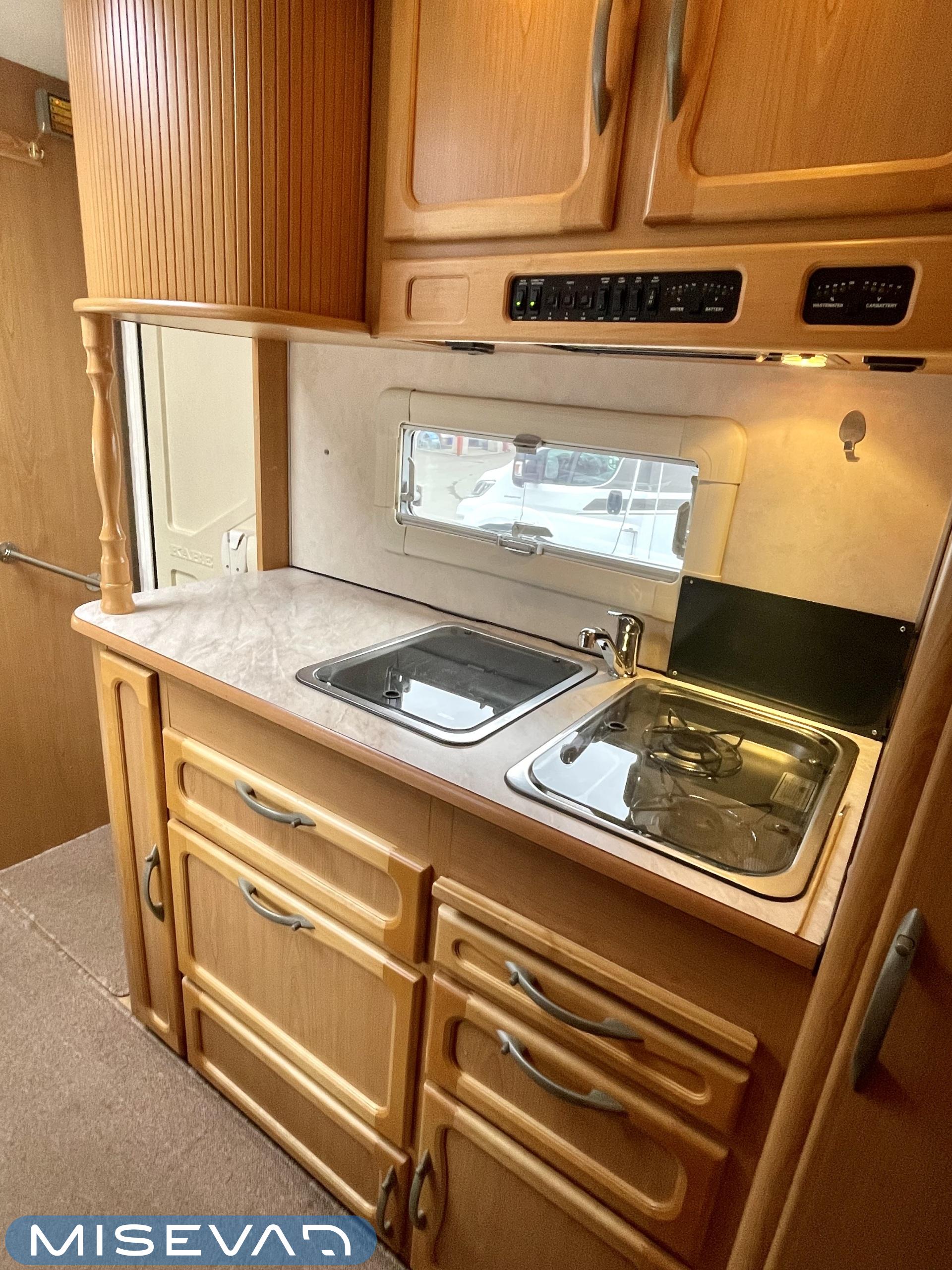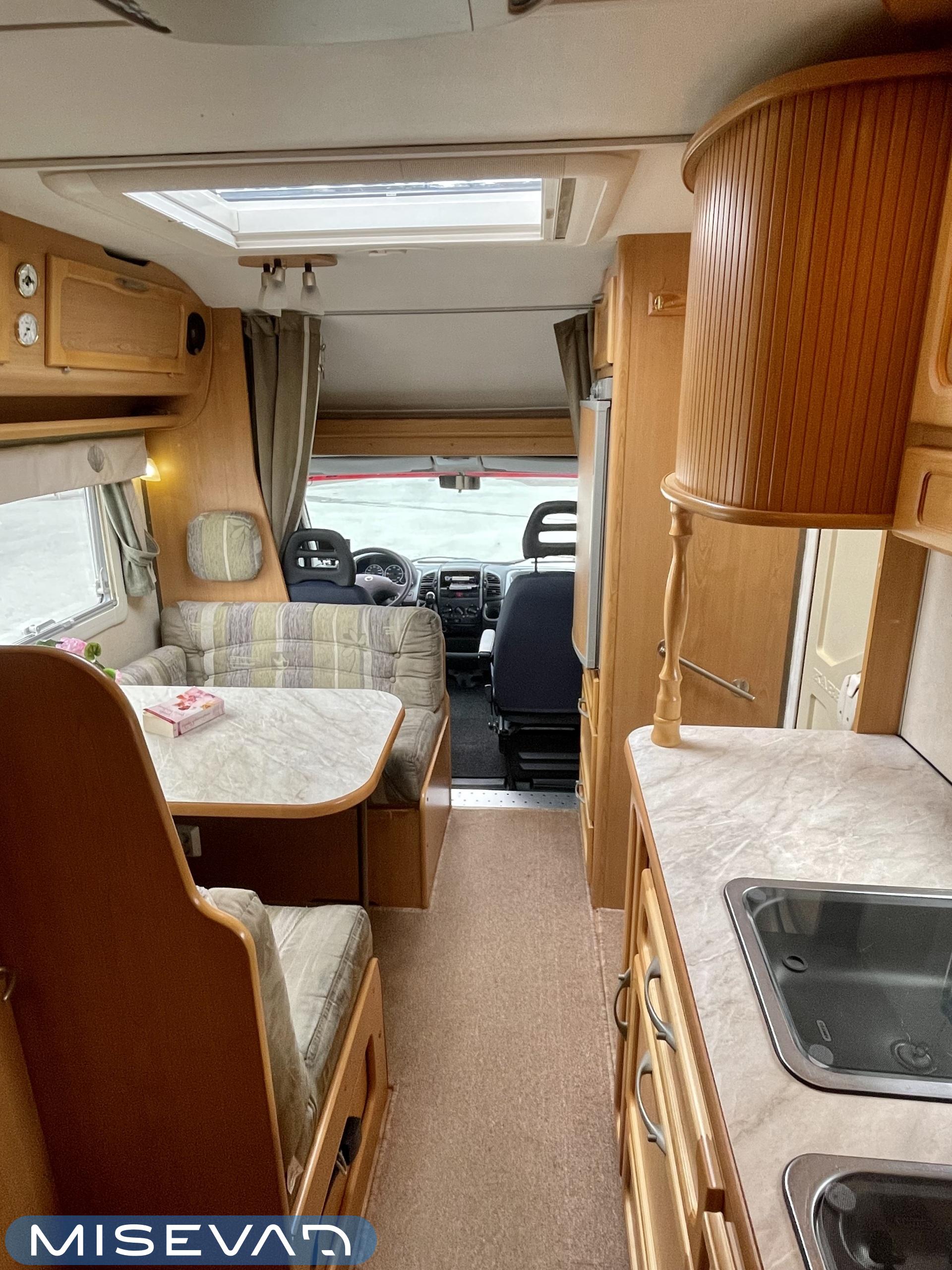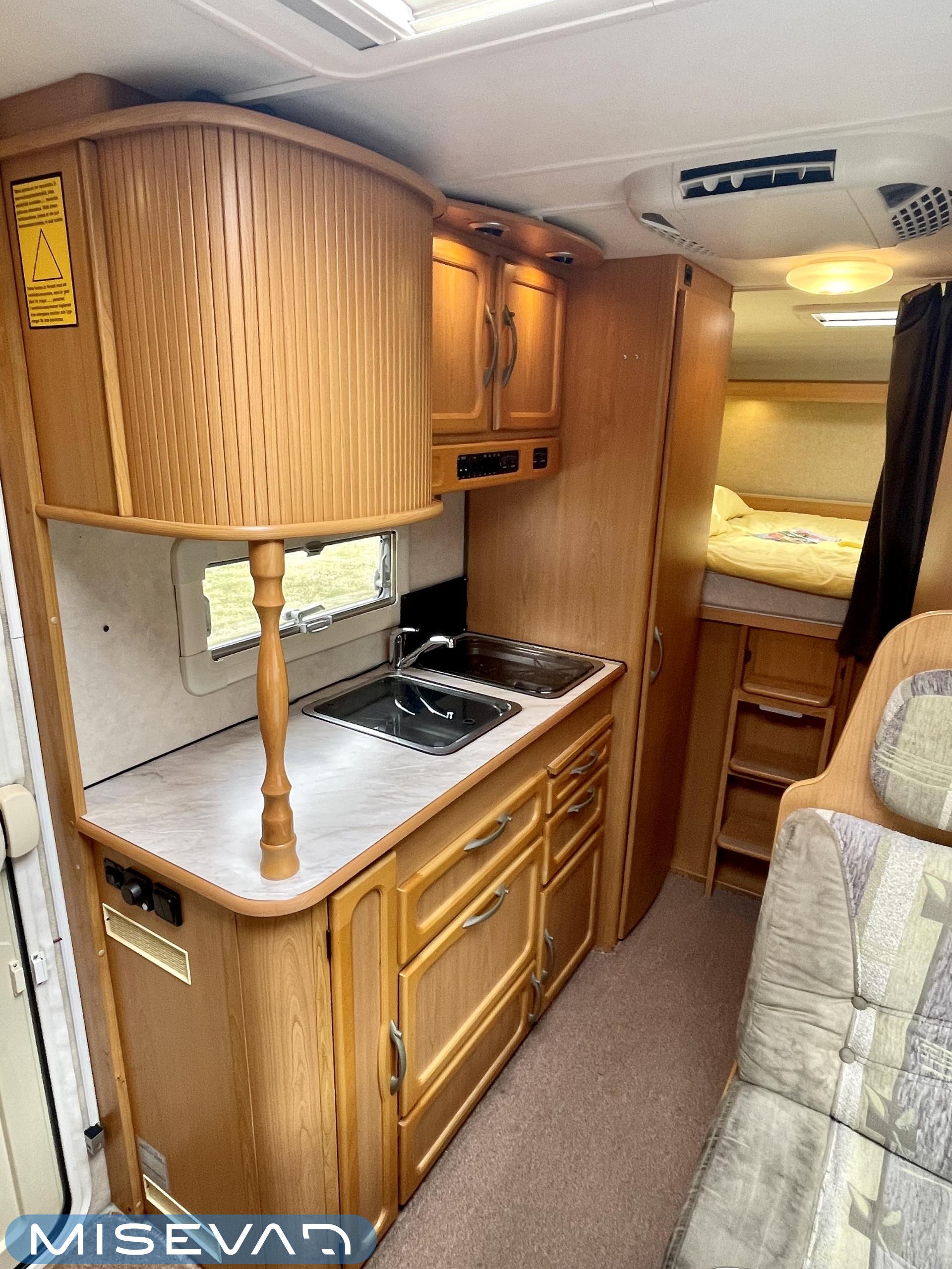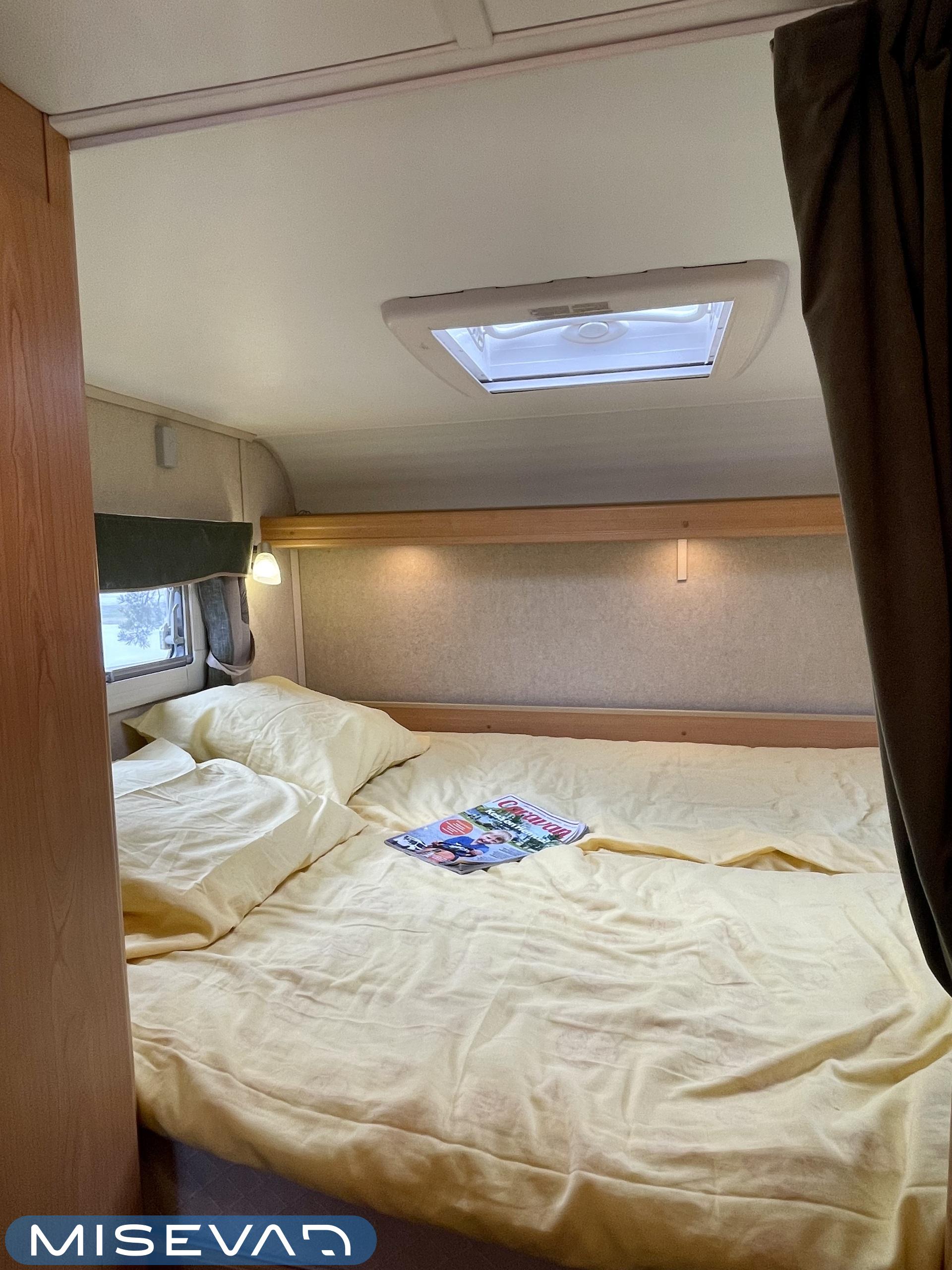 CD-soitin, Erikoisvanteet, Jääkaappi, Kasetti WC, Kasettiverhot, Kattoluukku, Keskuslämmitys, Liesi, Lämminvesiboileri, Markiisi, Nestekiertolämmitys, Ohjaustehostin, Pakastelokero, Parivuode, Pesuallas, Polttoainekäyttöinen lisälämmitin, Radio, Suihku, Sisätilanpistoke, Sähköpatruuna, Alde, Lattialämmitys (nestekierto), Ilmastointi (asuintila), Webasto/Eber, Kesärenkaat, 1 x kevytmet.vanteet, kwh-mittari, astinlaudat, kaasun ulosotto