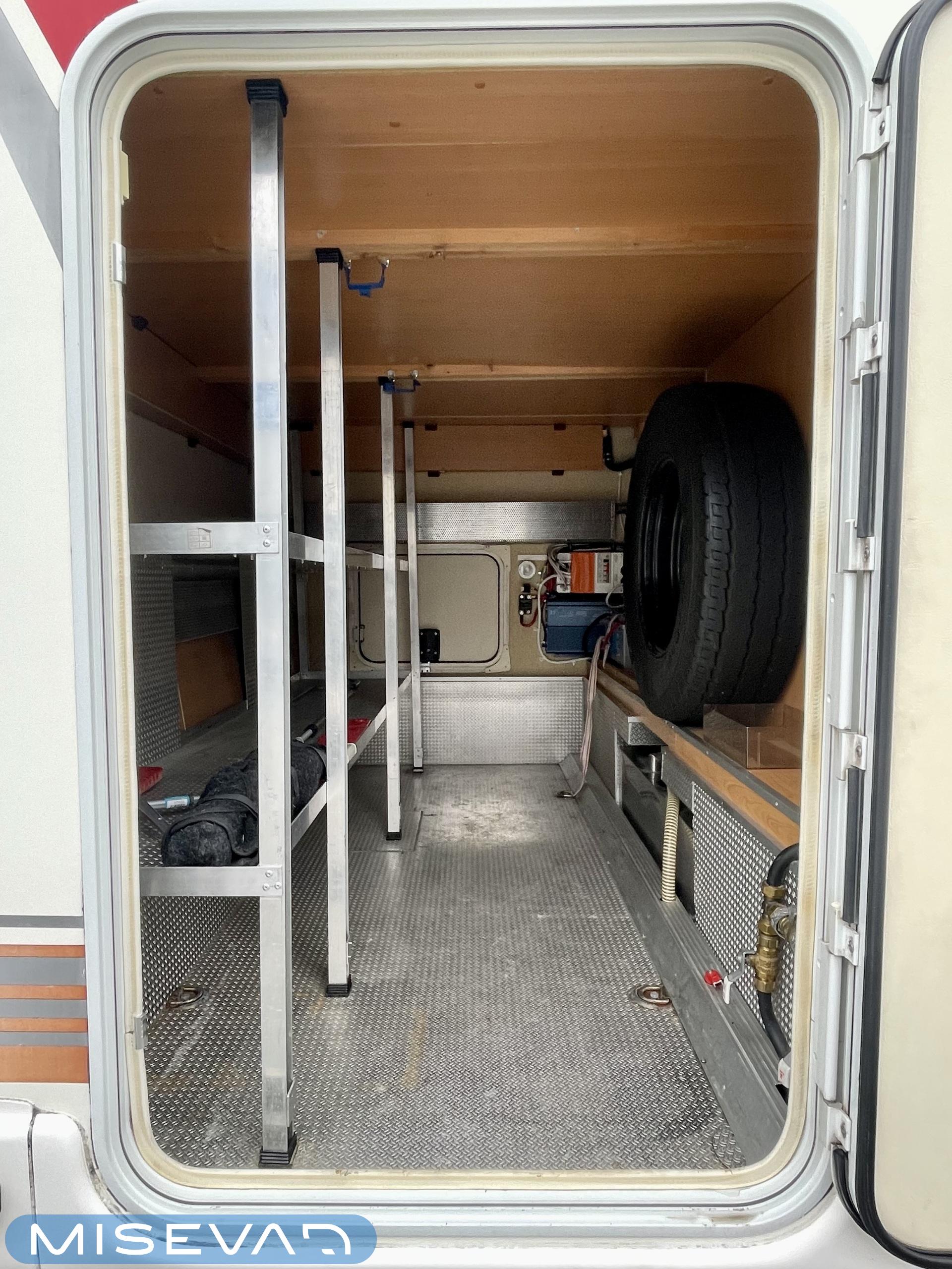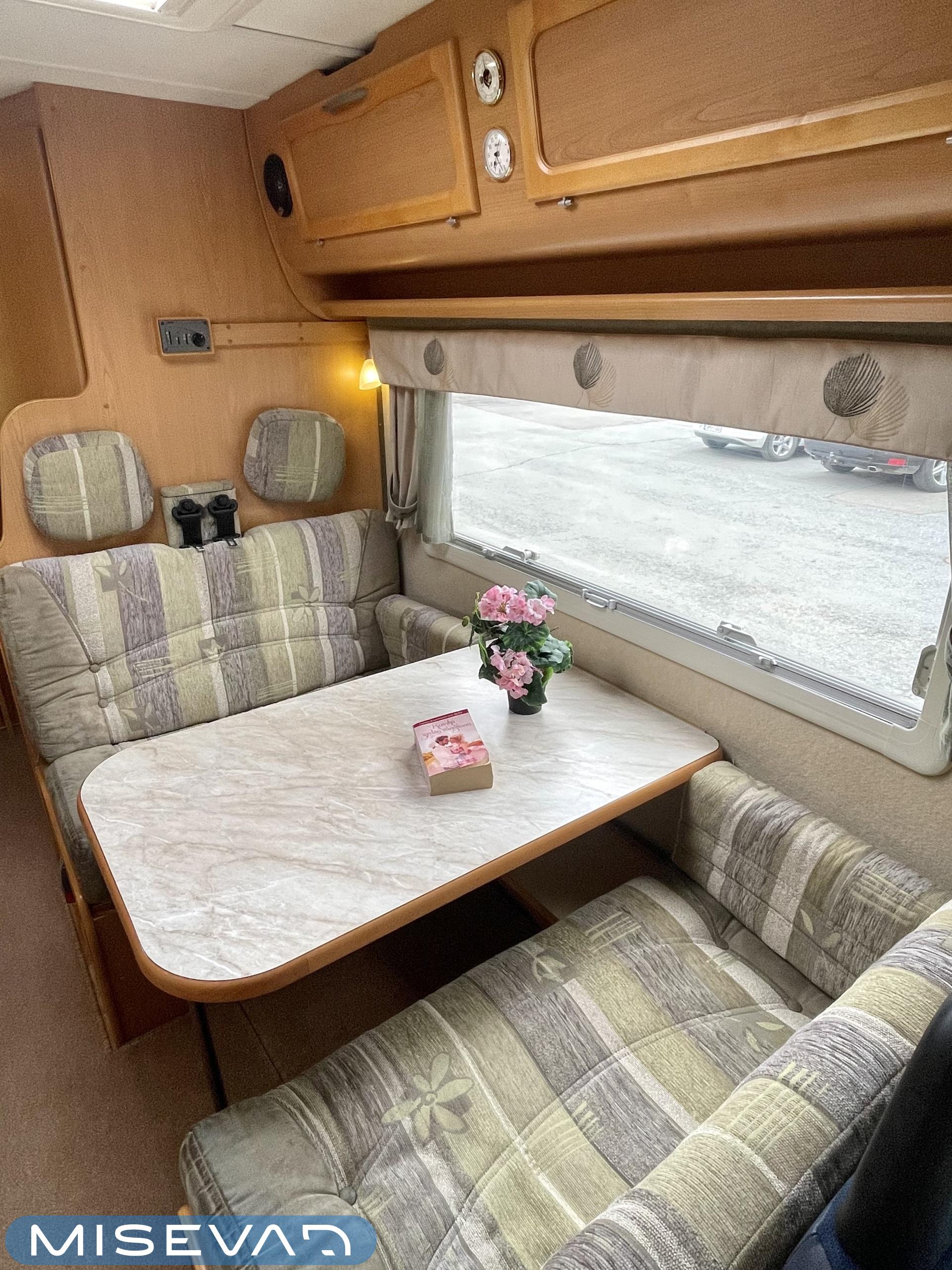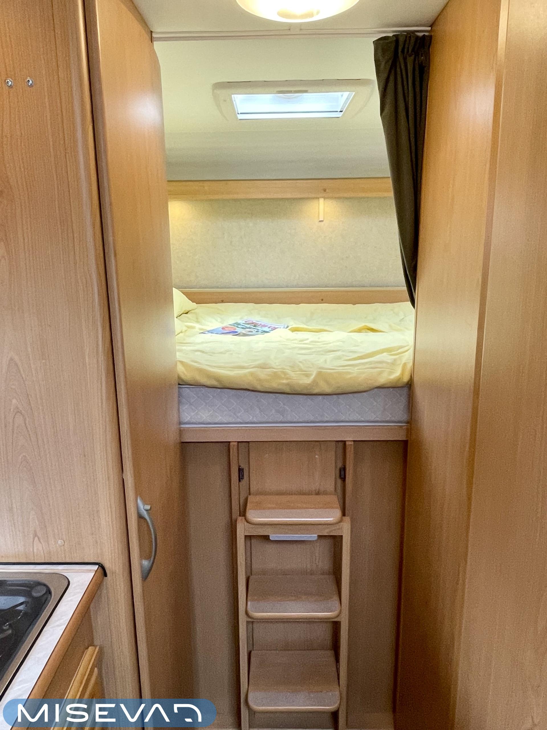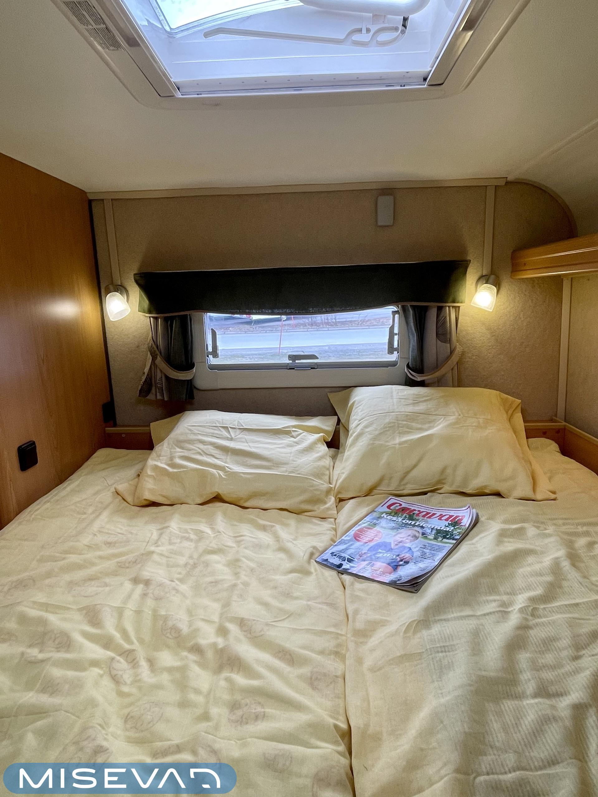 CD-soitin, Erikoisvanteet, Jääkaappi, Kasetti WC, Kasettiverhot, Kattoluukku, Keskuslämmitys, Liesi, Lämminvesiboileri, Markiisi, Nestekiertolämmitys, Ohjaustehostin, Pakastelokero, Parivuode, Pesuallas, Polttoainekäyttöinen lisälämmitin, Radio, Suihku, Sisätilanpistoke, Sähköpatruuna, Alde, Lattialämmitys (nestekierto), Ilmastointi (asuintila), Webasto/Eber, Kesärenkaat, 1 x kevytmet.vanteet, kwh-mittari, astinlaudat, kaasun ulosotto