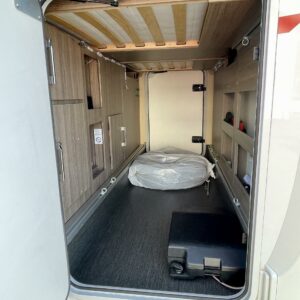 Takaosan erillisvuoteet on mahdollista yhdistää koko auton levyiseksi mega- sängyksi. Vuoteiden alta löytyy iso läpilastattava takatalli.