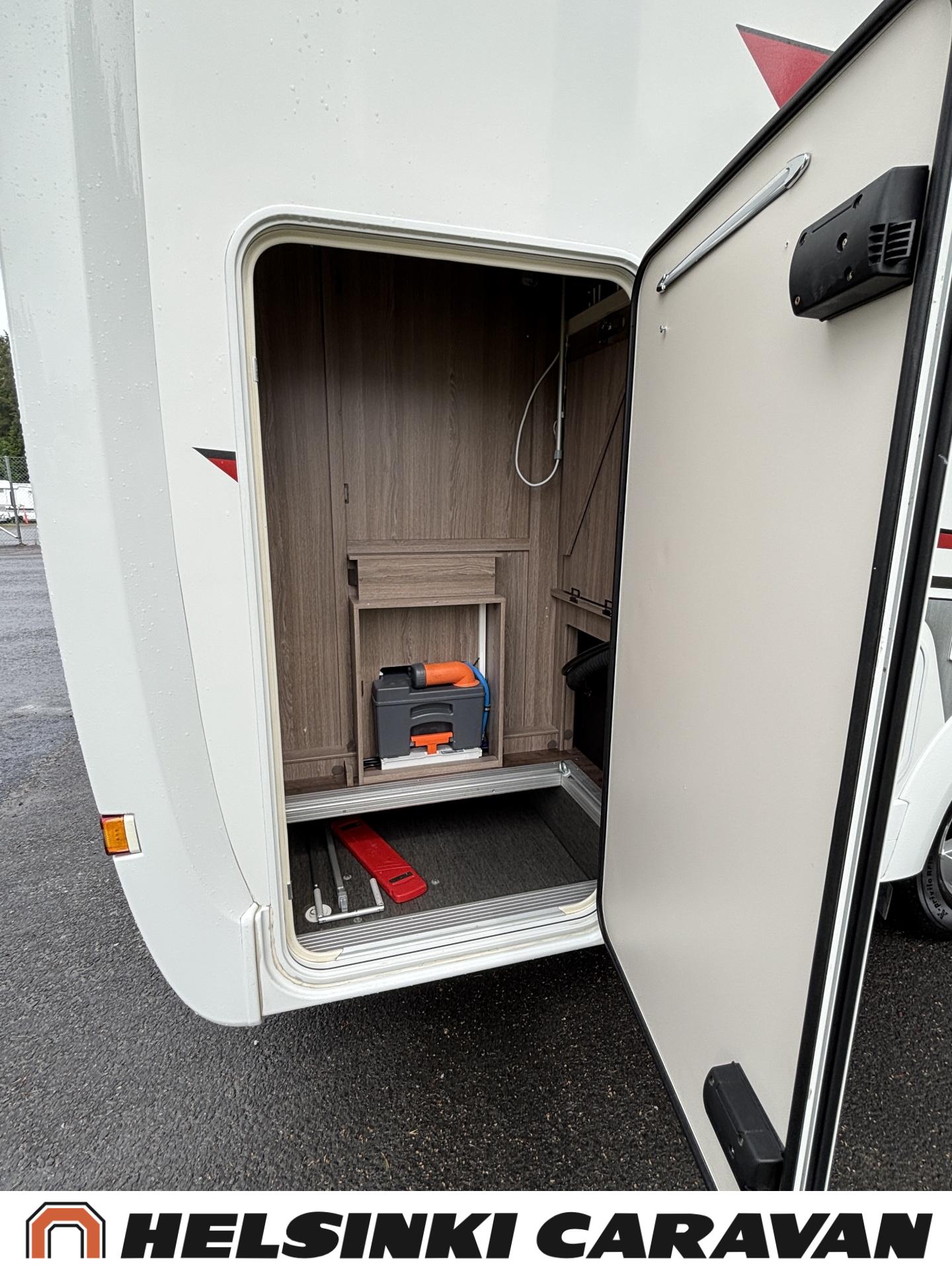 ABS-jarrut, Airbag, Ajotietokone, Alde, Erikoisvanteet, Ilmastointi: Manuaalinen, Ilmastointi ajotilassa, Erillisvuoteet, Eristetty harmaavesisäiliö, Kasetti WC, Jääkaappi, Kasettiverhot, Kattoluukku, Lattiamatot asunto-osassa, Liesi, Lattialämmitys, Käynnistyksenesto, Keskuslämmitys, Keskuslukitus: Kaukosäätöinen, Lohkolämmitin, Lämminvesiboileri, Markiisi, Mikroaaltouuni, Nestekiertolämmitys, Ohjaustehostin, Pakastelokero, Radio, Pysäköintikamera, Suihku, Sähkökäyttöiset ikkunat, Sähköpatruuna, Sähköpeilit, Turbo, Vakionopeudensäädin, Aggregaatti
