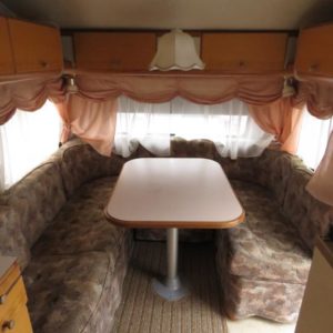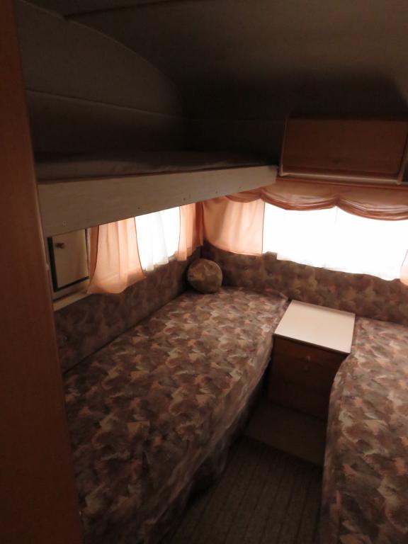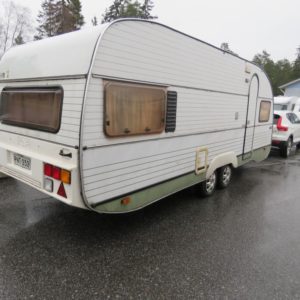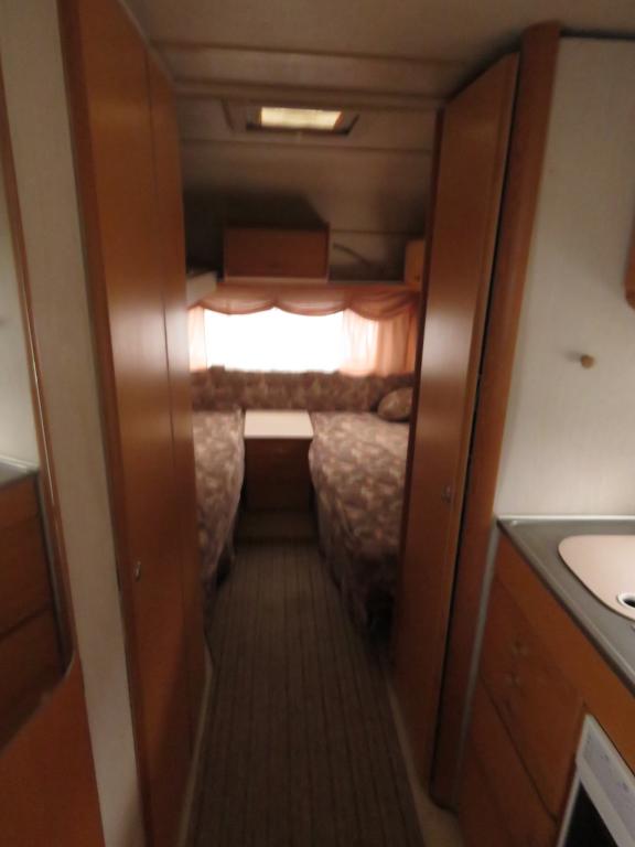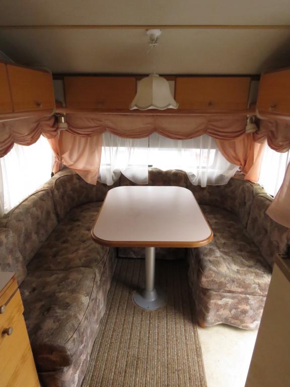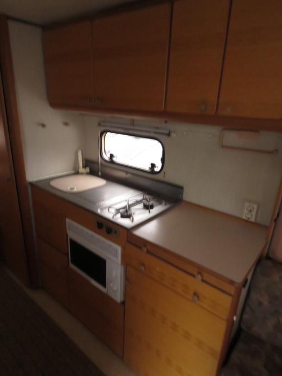Myydään kaasulaitteet koeponnistettuna. Muut laitteet ei tarkastettuja. Takana erillisvuoteet ja päällä ylävuoteet,keskellä keittiö ja wc,edessä U-istuinryhmä.