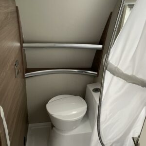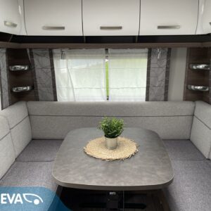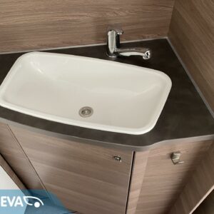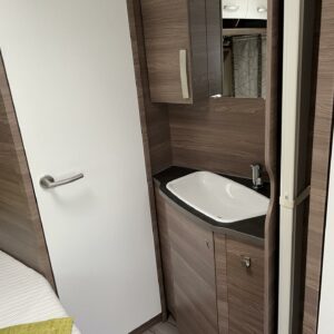 Vaunun etuosassa on viihtyisä pitkittäinen parivuode, jossa voit nauttia rauhallisista yöunista. Samasta osasta löytyvät myös WC- ja suihkutilat.