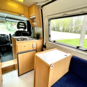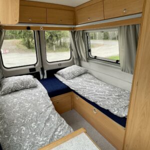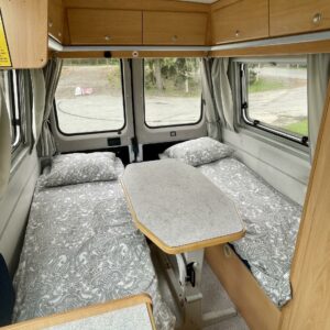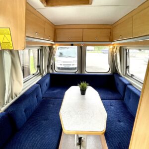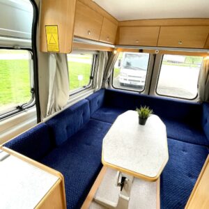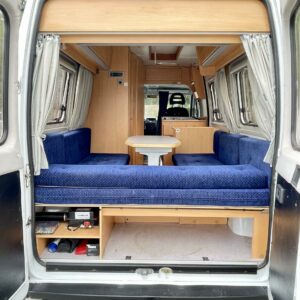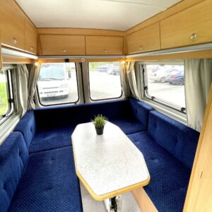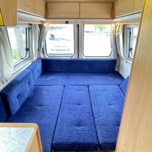 Auton takaosassa on iso U- ryhmä, jonka pöydän ympärille mahtuu isompikin porukka. Sivusohvat (190 x 65 cm / 182 x 62 cm) toimivat erillisvuoteina. Pöytäryhmä on mahdollista sijata myös koko auton levyiseksi parivuoteeksi.