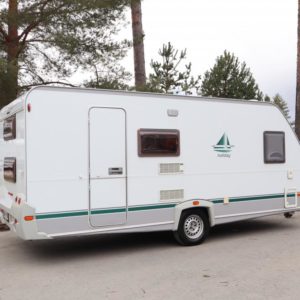 Varusteina mm: Truma- keskuslämmitys, Etuteltta, TV- antenni,..