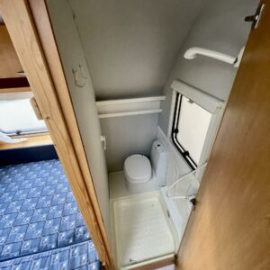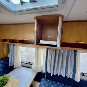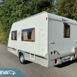 Truma, Jääkaappi, Kasetti WC, Kasettiverhot, Kattoluukku, Liesi, Lämminvesiboileri, Pakastelokero, Parivuode, Pesuallas, Tukijalat