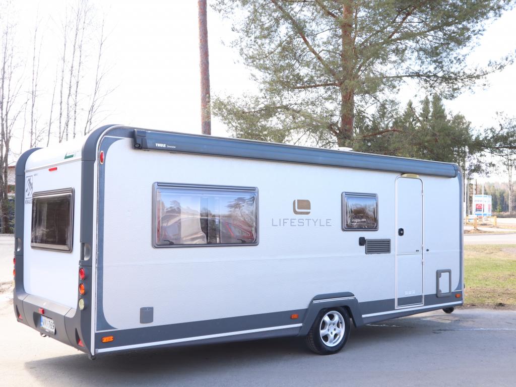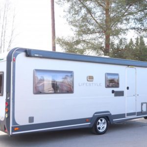 Varusteina mm: Truma- keskuslämmitys sähköpatruunalla, Lattialämmitys, Kotelomarkiisi, TV- antenni,..