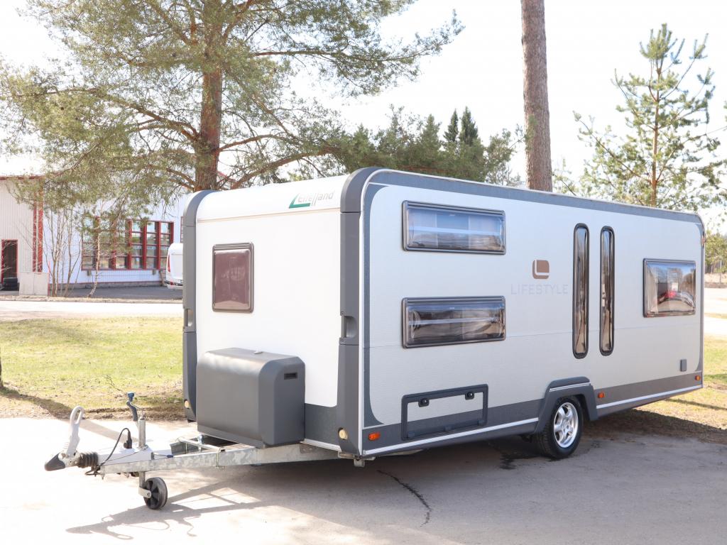 Varusteina mm: Truma- keskuslämmitys sähköpatruunalla, Lattialämmitys, Kotelomarkiisi, TV- antenni,..