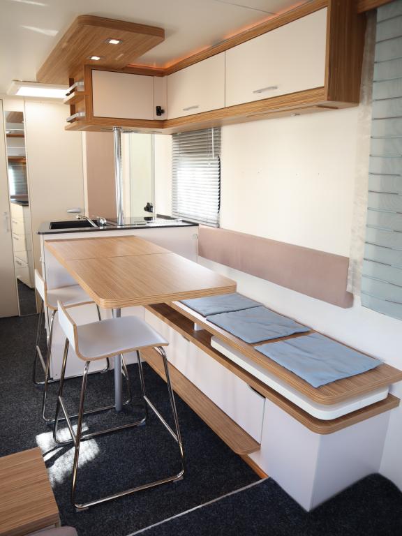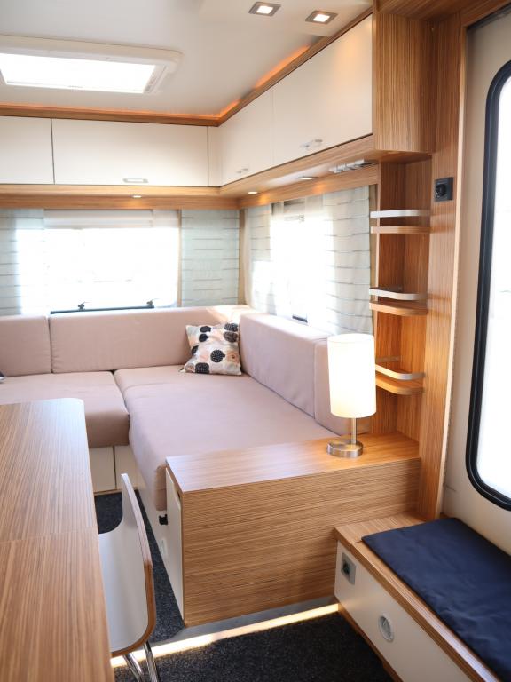 Sekä ulkokuoreltaan että ennenkaikkea sisätiloiltaan muista vaunuista erottuva Knaus.