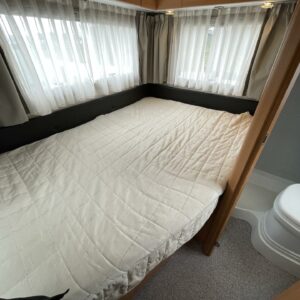 Laadukas integroitu Knaus nestekeskuslämmöllä ja matalalla parivuoteella.