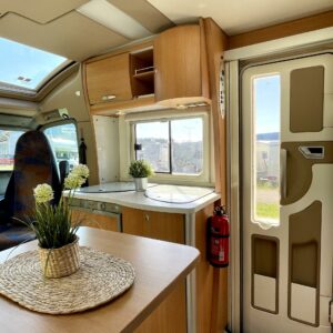 ABS-jarrut, Airbag, Jääkaappi, Kahdet renkaat, Kasetti WC, Kasettiverhot, Kattoluukku, Liesi, Lämminvesiboileri, Markiisi, Ohjaustehostin, Pakastelokero, Parivuode, Pesuallas, Pysäköintikamera, Pyöräteline, Radio, Sähkökäyttöiset ikkunat, Sähköpeilit, Turbo, Truma, Ilmastointi (ohjaamo), Webasto/Eber, Asuinosan hyttysovi/verho, ohjaamon kasettiverhot