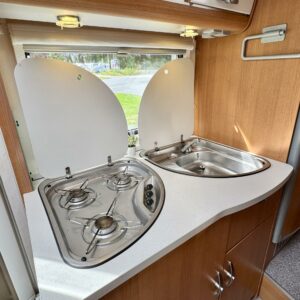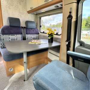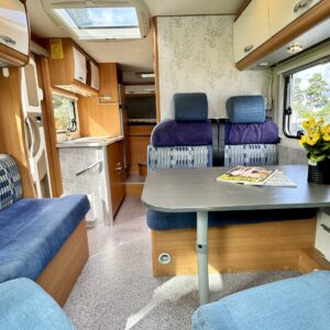 Truma, ABS-jarrut, Airbag, Eristetty harmaavesisäiliö, Jääkaappi, Kasetti WC, Kasettiverhot, Kattoluukku, Liesi, Lämminvesiboileri, Markiisi, Ohjaustehostin, Pakastelokero, Parivuode, Pesuallas, Pysäköintikamera, Pyöräteline, Radio, Suihku, Sähkökäyttöiset ikkunat, Sähköpeilit, TV-antenni tai lautasantenni, Turbo, Vetokoukku, Ilmastointi (ohjaamo), ohjaamon kasettiverhot, jenkkijääkaappi