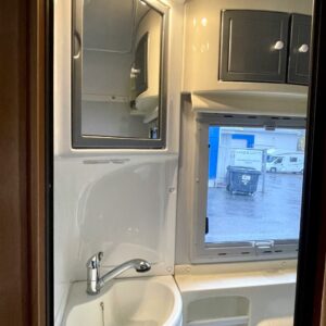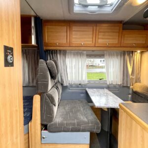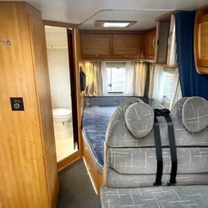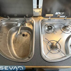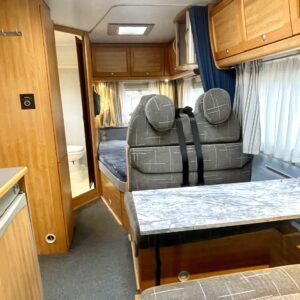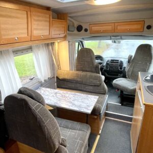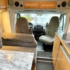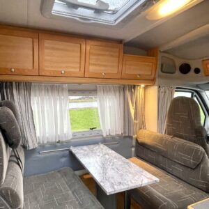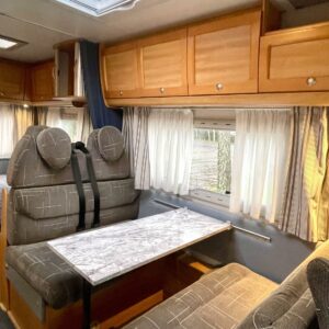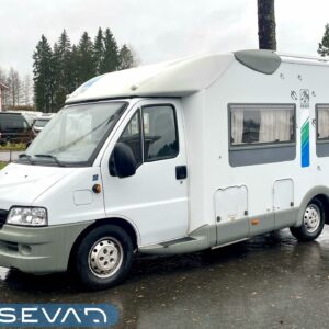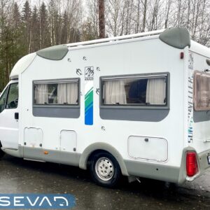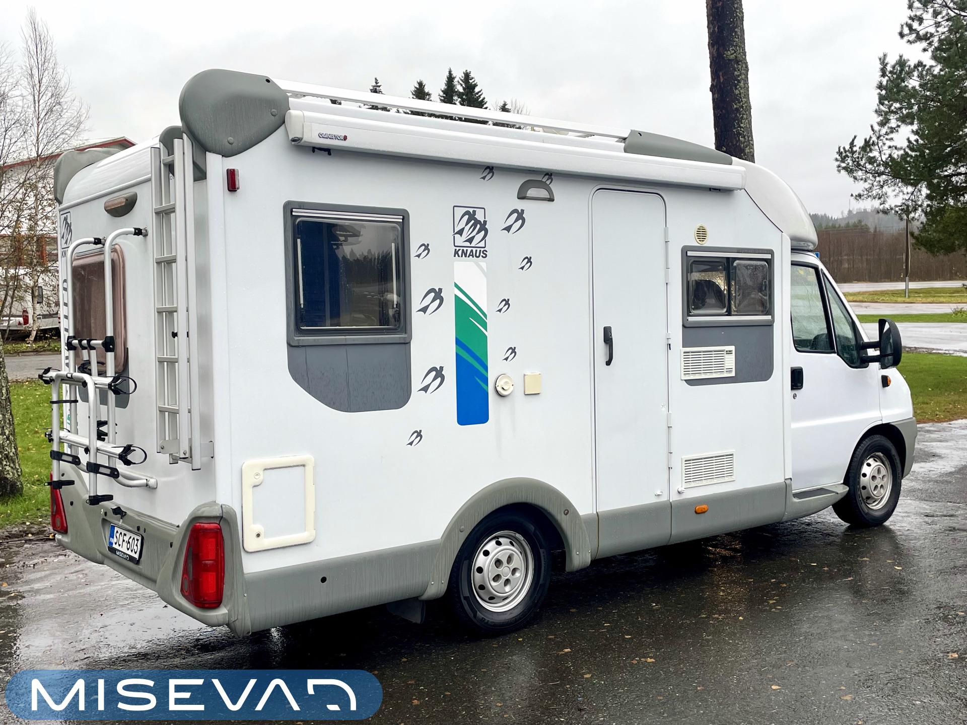 Aurinko tulee mukavasti asuinosaan isosta kattoluukusta ja valaisee koko sisätilan. Takaa löytyy parisänky ja kivan kokoinen wc-tila suihkuinen. Ulkosuihkukin onnistuu ikkunan kautta. Ruokailutila on tilava neljälle ja keittiö on kätevästi suoraan ruokailupöydän vieressä. Kaapistoja on Knausissa runsaasti ja vaatekaappikin iso. Sängyn alla säilytystilaa on vielä lisää. Kilometrejä autossa on vielä maltillisesti ikäänsä nähden, vaikka kuinka moneen Euroopan reissuun. Tule Misevalle hämmästelemään auton avaraa asuintilaa!