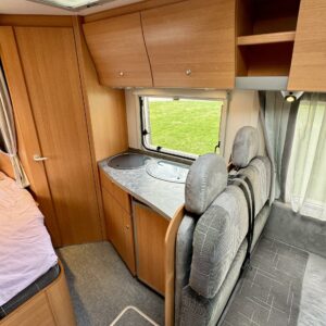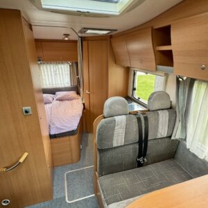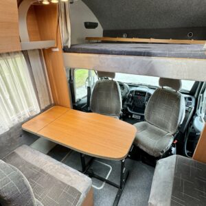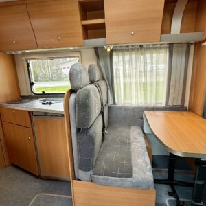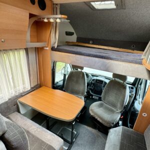 Huippuhienon kunnon omaava Knaussin alkovimallinen matkailuauto. Rekisteröity viidelle ja makuupaikat viidelle. Kaksoispohjalla ja tehokkaalla 6kw Trumaticin lämmittimellä varustettu, joten talvimatkailukin onnistunee mukavasti. Kaksoispohja mahdollistaa myös runsaat säilytystilat välipohjassa. Auton takaosaan on sijoitettu pitkittäinen parivuode ja toiselta sivulta löytyy WC/kylpyhuonetilat. Suihkulle on oma erillinen tilansa. Keskelle on sijoitettu keittiö normaalilla matkailuauton keittiövarustuksella, sekä säilytytiloja tavaroille. Edessä on pöytäryhmä minne yhdistyvät kääntyvät ohjaamon penkit, sekä sivusohva. Tästä saadaan pöytä alas laskemalla yksi vuodepaikka. Ohjaamossa on ilmastointi, sekä peruutuskamera. Vetokoukkukin löytyy, eli kärrin saa mukaan tarvittaessa. Koukulle annetut vetomassat 1600kg jarrullisena ja 750kg jarruttomana. Selvästi hyvän huolenpidon alla ollut tapaus mitä voidaan kutsua jopa ”yksilöksi”.