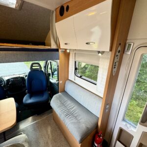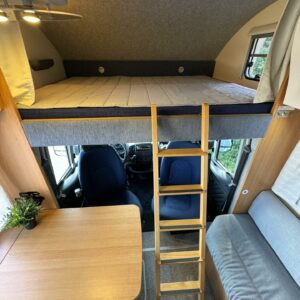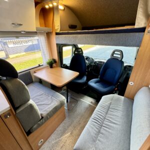 Siisti ja avara matalalla parivuoteella varustettu matka-auto neljälle. Tehokas 6kW lämmitys ja lämmin kaksoispohja.