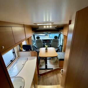Lyhyehkö mutta tilavahko Knaus, jossa käytännöllinen pohjaratkaisu. Auton takaosassa on iso takatalli sekä mukava poikittainen parisänky, joka tekee nukkumisesta helppoa ja tilavaa ilman turhaa säätämistä.