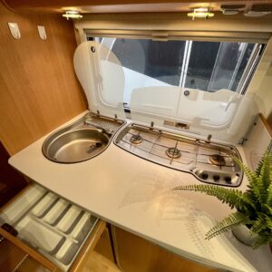 Taloudellisesti liikkuva Knaus Renaultin pohjalla, sopii erinomaisesti pariskunnalle tai yksin matkustavalle, joka arvostaa vaivatonta reissaamista. Auto on rekisteröity kolmelle ja tarjoaa kaiken oleellisen matkailuautossa: avara WC-tila sekä keittiö, josta löytyvät jääkaappi ja liesi.
