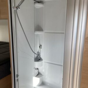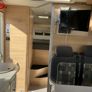 Siisti ja pienikokoinen matka-auto, vaikka jokapäiväiseen käyttöön. Pituus vain 5,99 m. Takana leveä parivuode ja tilava pesuhuone suihkuilla.