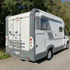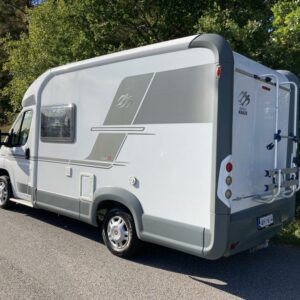 Siisti ja pienikokoinen matka-auto, vaikka jokapäiväiseen käyttöön. Pituus vain 5,99 m. Takana leveä parivuode ja tilava pesuhuone suihkuilla.