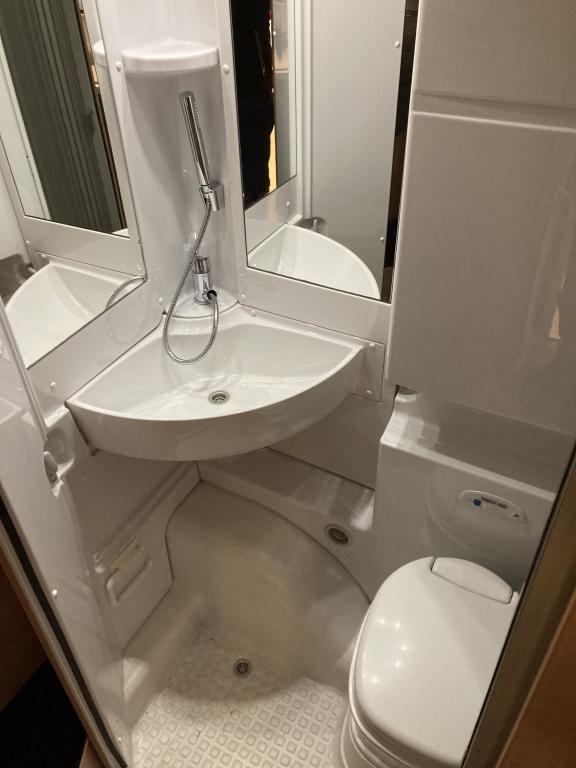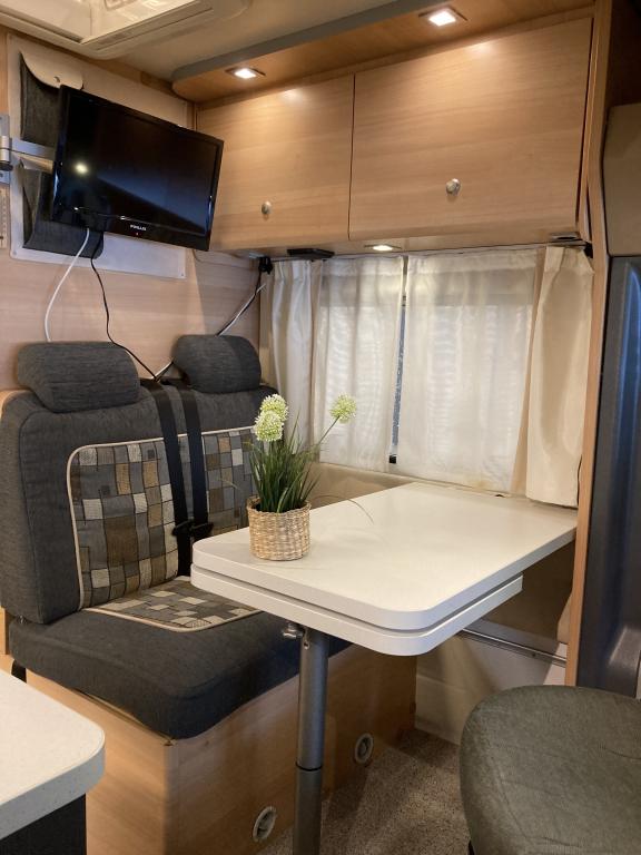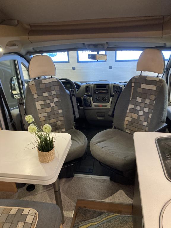 Siisti ja pienikokoinen matka-auto, vaikka jokapäiväiseen käyttöön. Pituus vain 5,99 m. Takana leveä parivuode ja tilava pesuhuone suihkuilla.