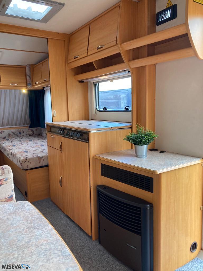 Erillisvuoteet, Jääkaappi, Kasetti WC, Kasettiverhot, Kattoluukku, Keskuslämmitys, Lattiamatot asunto-osassa, Liesi, Lämminvesiboileri, Pesuallas, Trumatic, Tukijalat