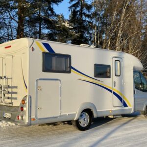 ABS-jarrut,Erillisvuoteet,Ilmastointi man.,Jääkaappi,Kahdet renkaat,Kasetti WC,Liesi,Lämminvesiboileri,Pyöräteline,Stereot,Sähkökäyttöiset ikkunat,Sähköpatruuna,Sähköpeilit,Sähkörappu,Trumatic,Vak.nopeudensäädin,Turvatyynyt,soitin