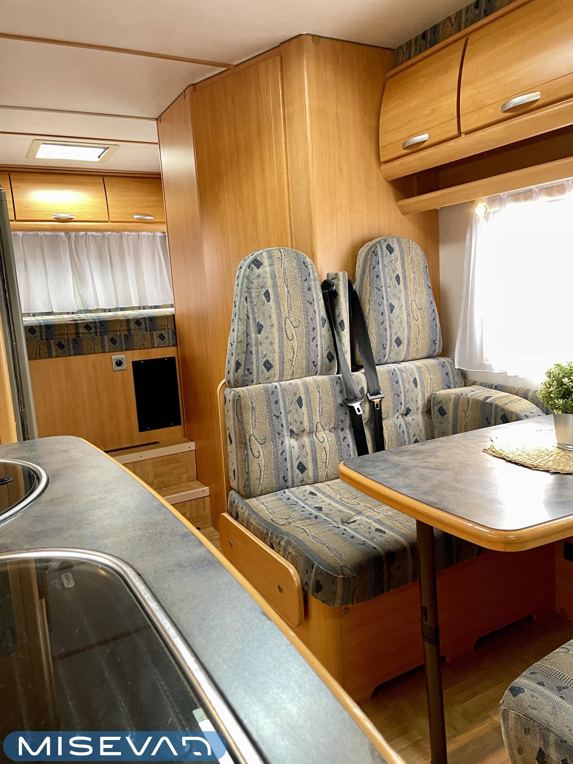 Truma, ABS-jarrut, Airbag, CD-soitin, Eristetty harmaavesisäiliö, Jääkaappi, Kasetti WC, Kasettiverhot, Kattoluukku, Liesi, Lämminvesiboileri, Markiisi, Ohjaustehostin, Pakastelokero, Parivuode, Pesuallas, Polttoainekäyttöinen lisälämmitin, Suihku, Tukijalat, Turbo, Vakionopeudensäädin, Vetokoukku, Ilmastointi (asuintila), Webasto/Eber, Invertteri, Sähkökäyttöiset ikkunat, Sähköpeilit