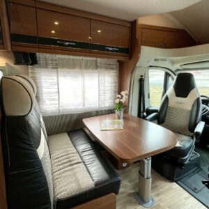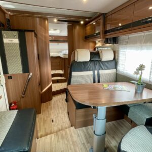 Ihanteellinen LMC perheelle jossa 4 henkeä. Vuoteet ja ruokailutila valmiina puhumattakaan hulppeasta tavaratilasta.