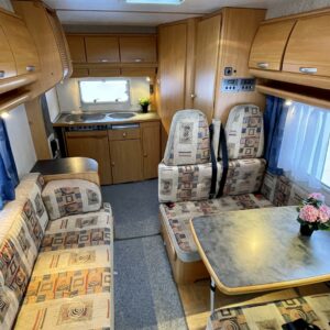 Jääkaappi, Kahdet renkaat, Kasetti WC, Kasettiverhot, Kattokaiteet/tikkaat, Kattoluukku, Keskuslämmitys, Käynnistyksenesto, Liesi, Lämminvesiboileri, Pesuallas, Parivuode, Pakastelokero, Ohjaustehostin, Markiisi, Pyöräteline, Radio, Suihku, Vetokoukku, Turbo, Trumatic, Sähkörappu