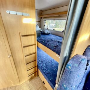 Truma, Erikoisvanteet, Eristetty harmaavesisäiliö, Jääkaappi, Kasetti WC, Kasettiverhot, Kattokaiteet/tikkaat, Kattoluukku, Kerrossänky, Liesi, Lohkolämmitin, Lämminvesiboileri, Markiisi, Ohjaustehostin, Pakastelokero, Pesuallas, Pyöräteline, Radio, Suihku, Sähkörappu, TV-antenni tai lautasantenni, Turbo, astinlaudat, televisioteline, Alla kitkat, mukaan kesät ilman vanteita, Invertteri